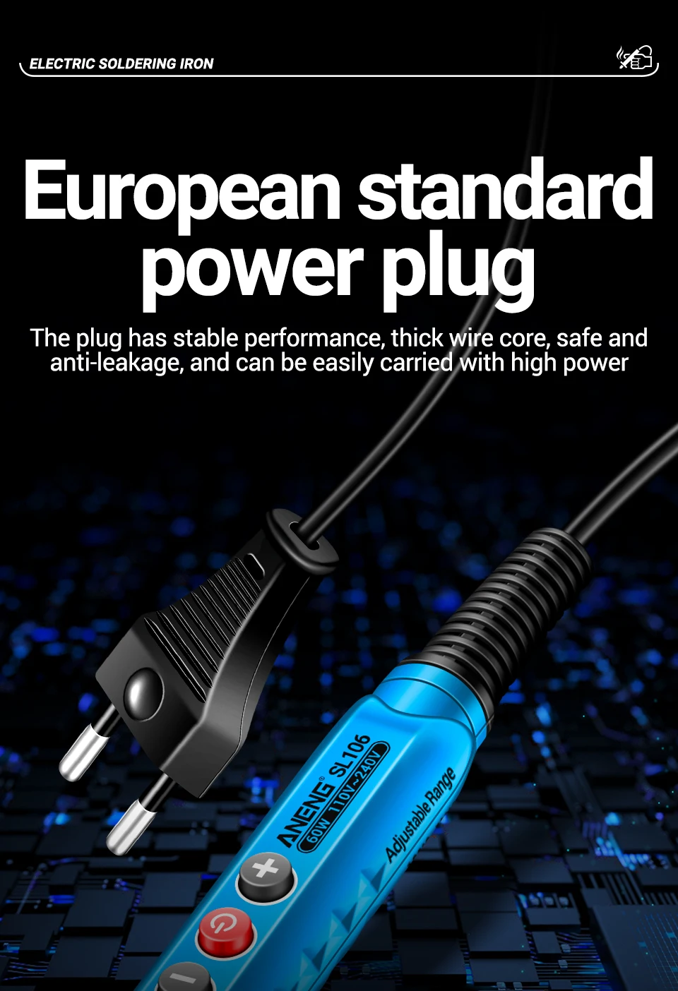 ANENG SL106 soldador eléctrico Digital de 60W temperatura ajustable 110V 220V herramienta de soldadura puntas de soldadura de núcleo de calentamiento cerámico Enchufe UE/enchufe estadounidense: adecuado para voltaje de 110 V-240 V