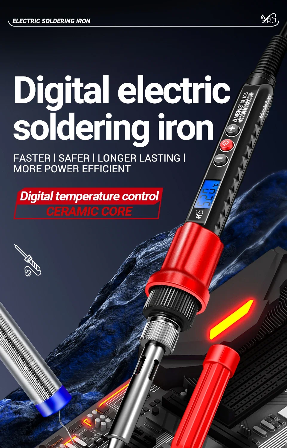 ANENGSoldadores eléctricos SL106 Soldadura de soldadura de temperatura ajustable Estación de retrabajo Herramientas de reparación de puntas de lápiz térmico 110V/220V