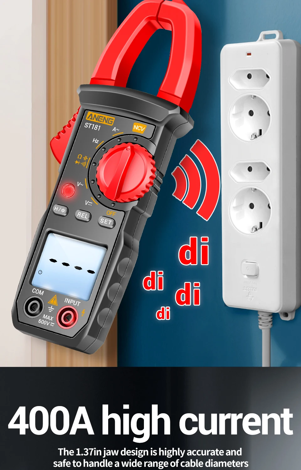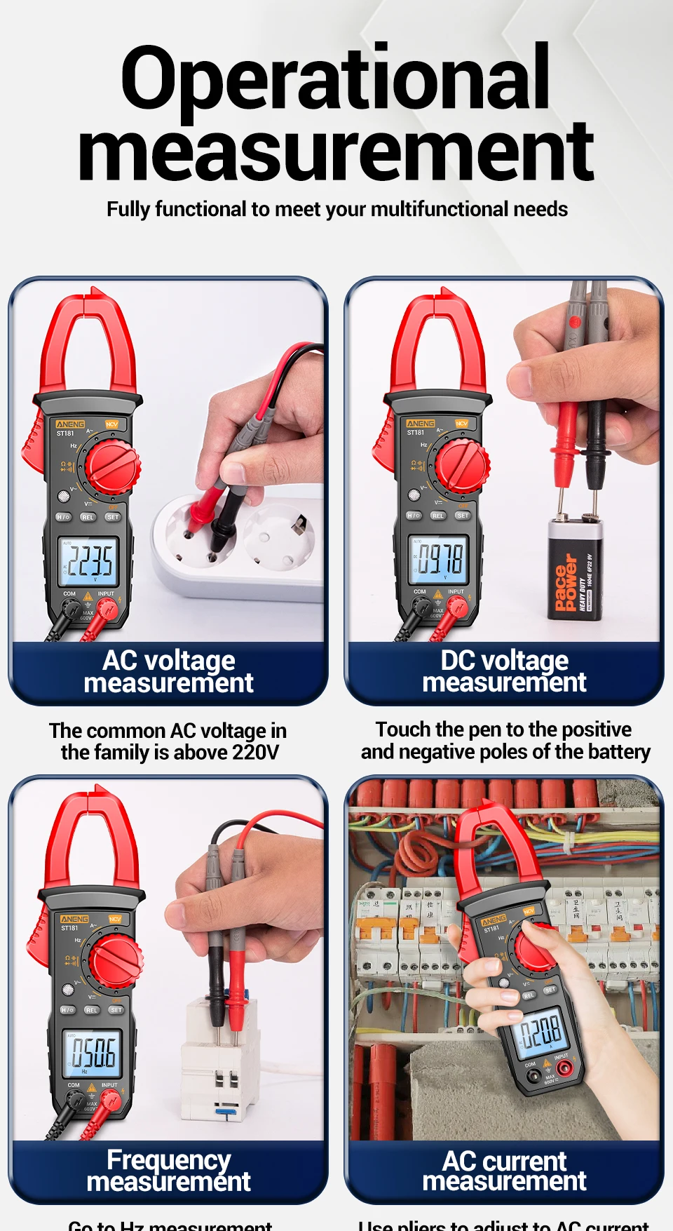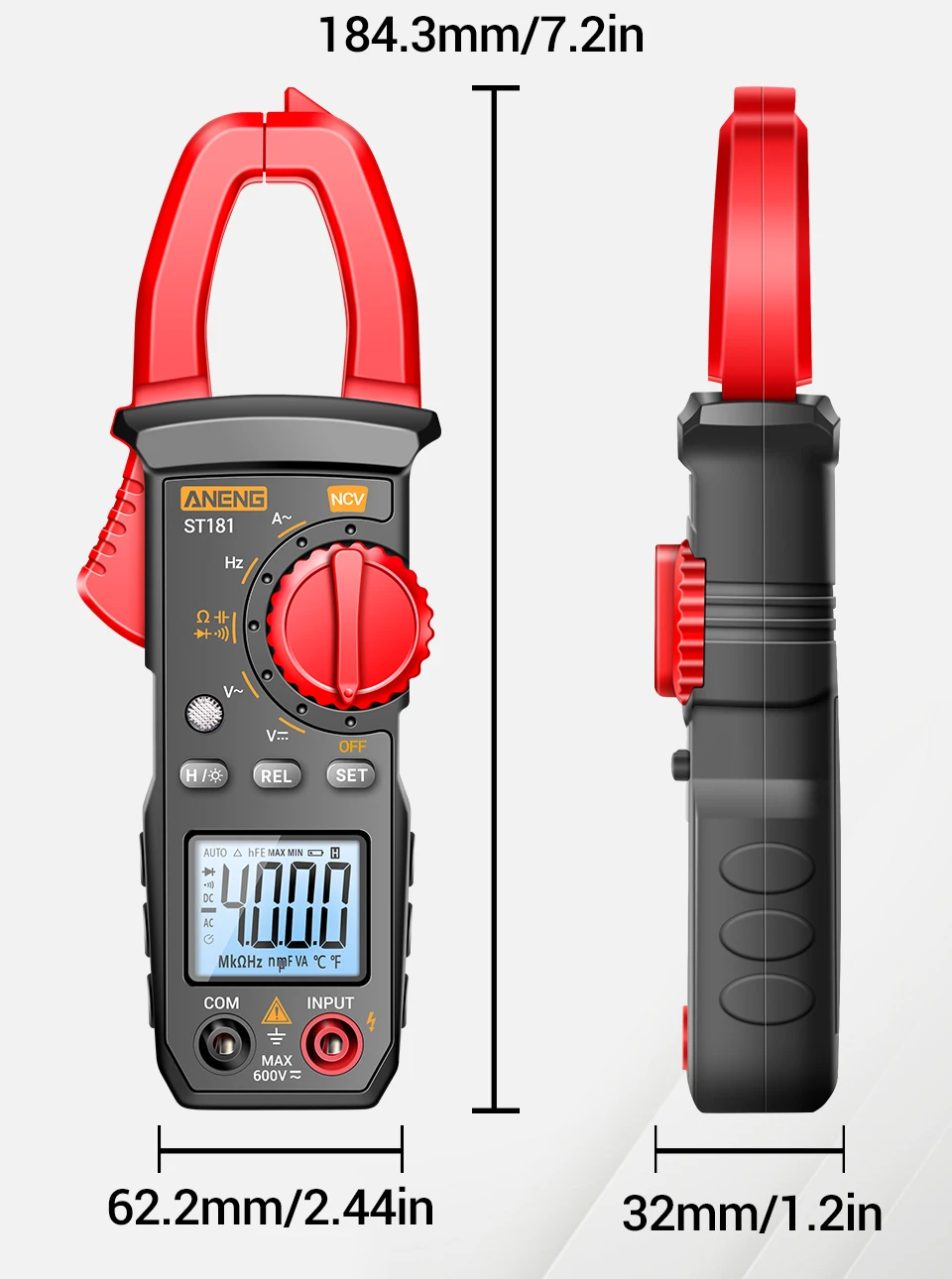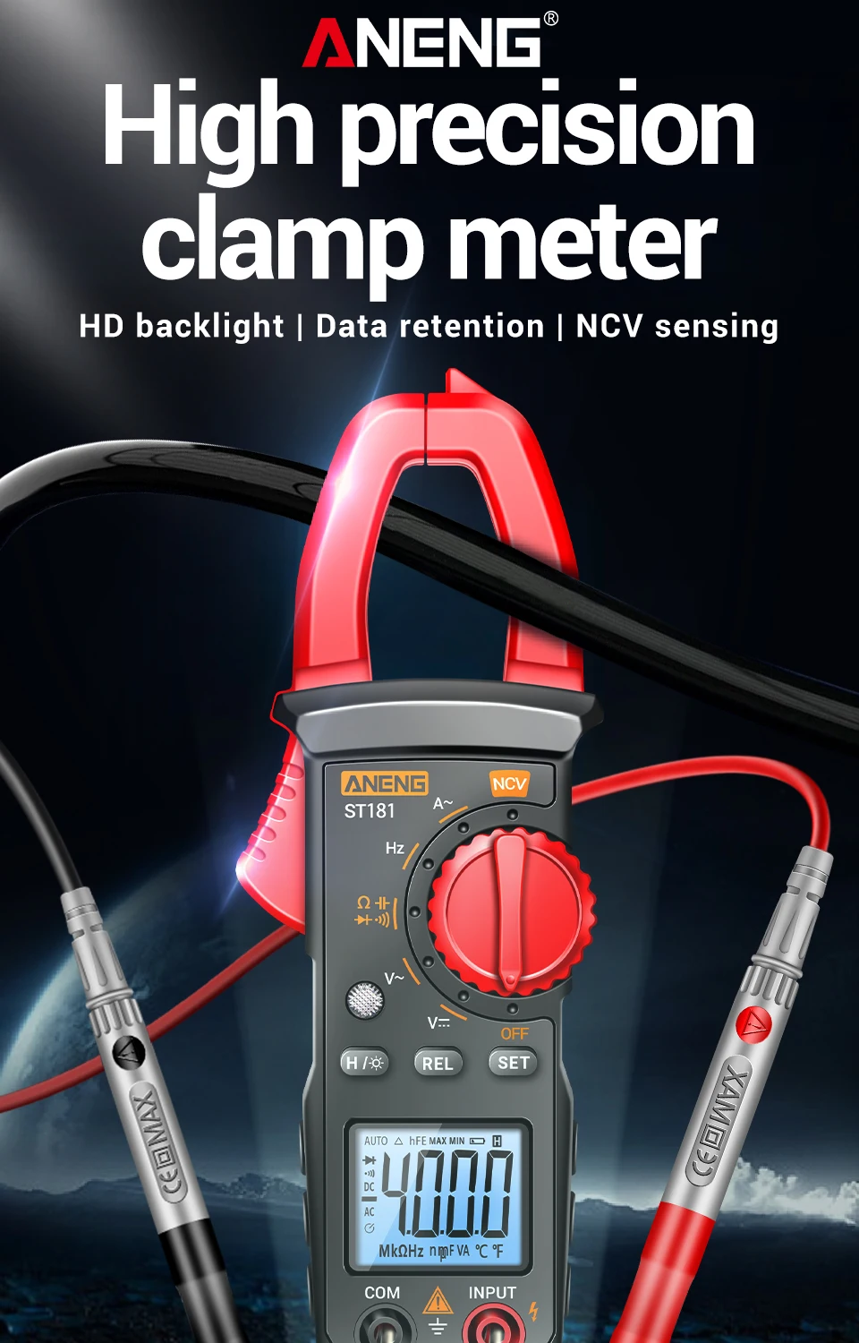 • Medición de alta precisión:La pinza amperimétrica ANENG ST181 proporciona mediciones precisas de voltaje y corriente, lo que la hace perfecta para trabajos eléctricos.