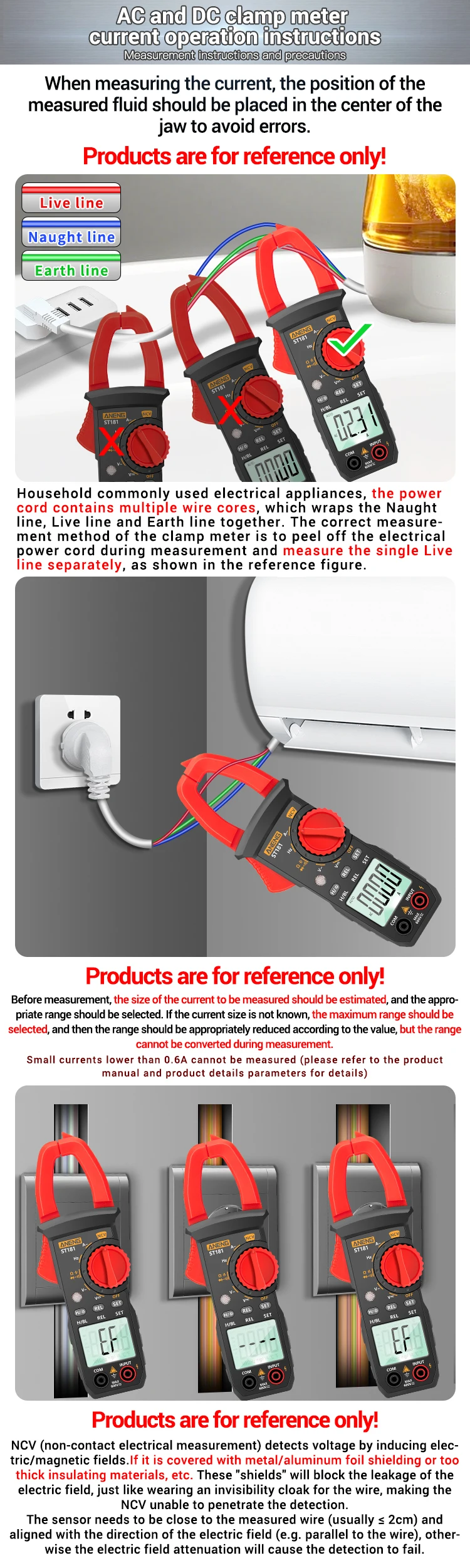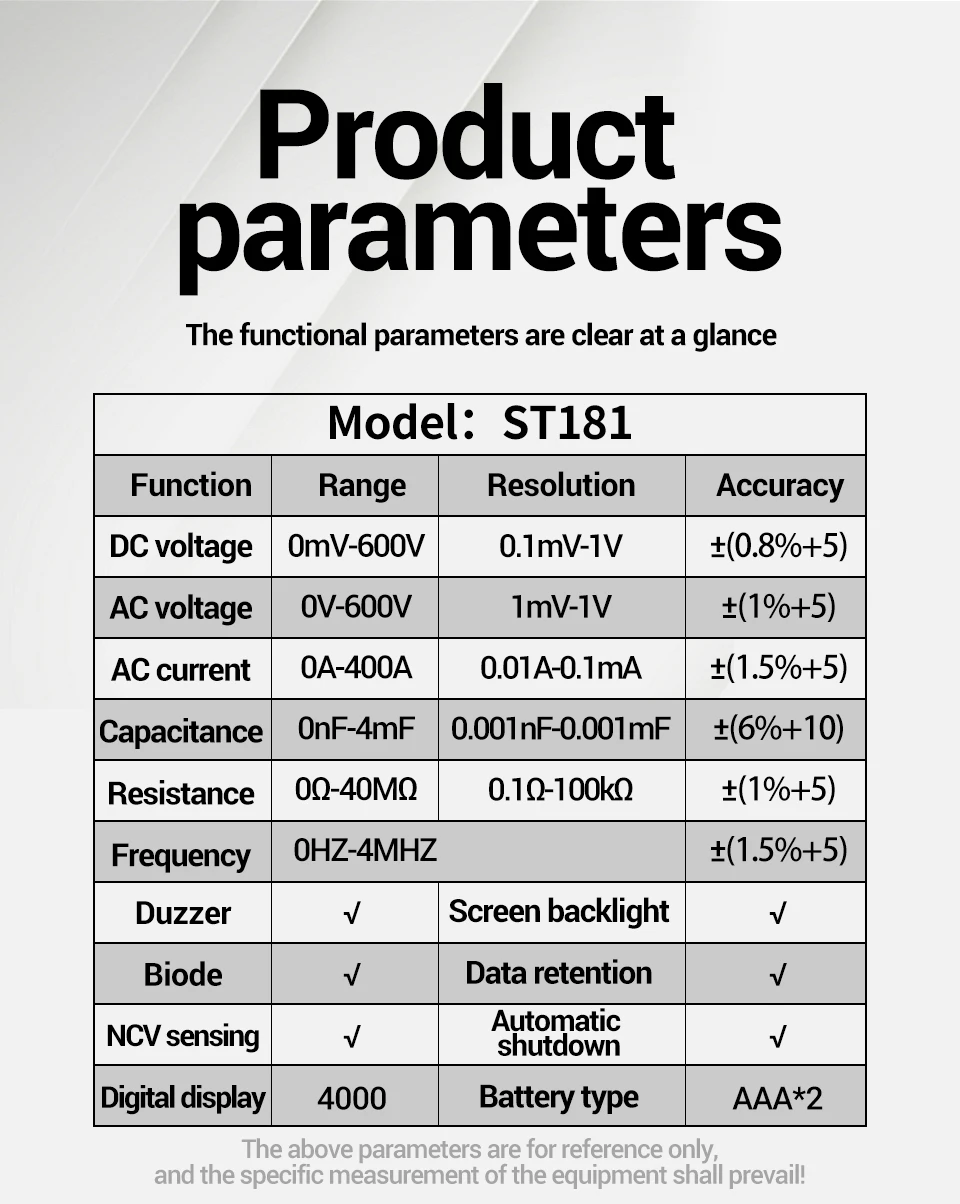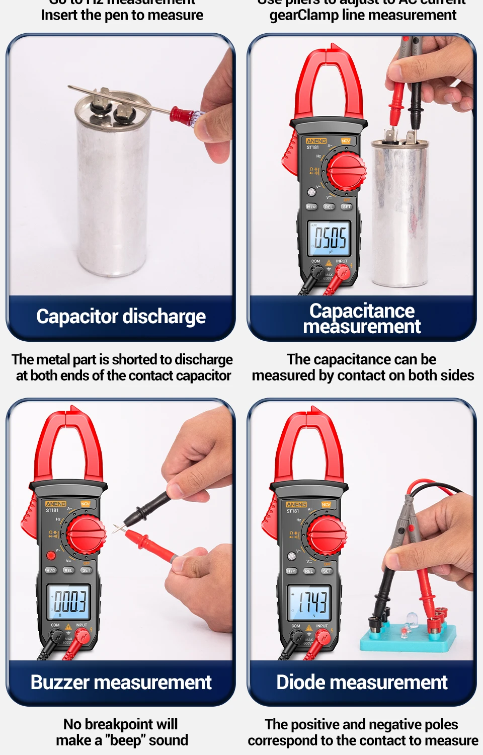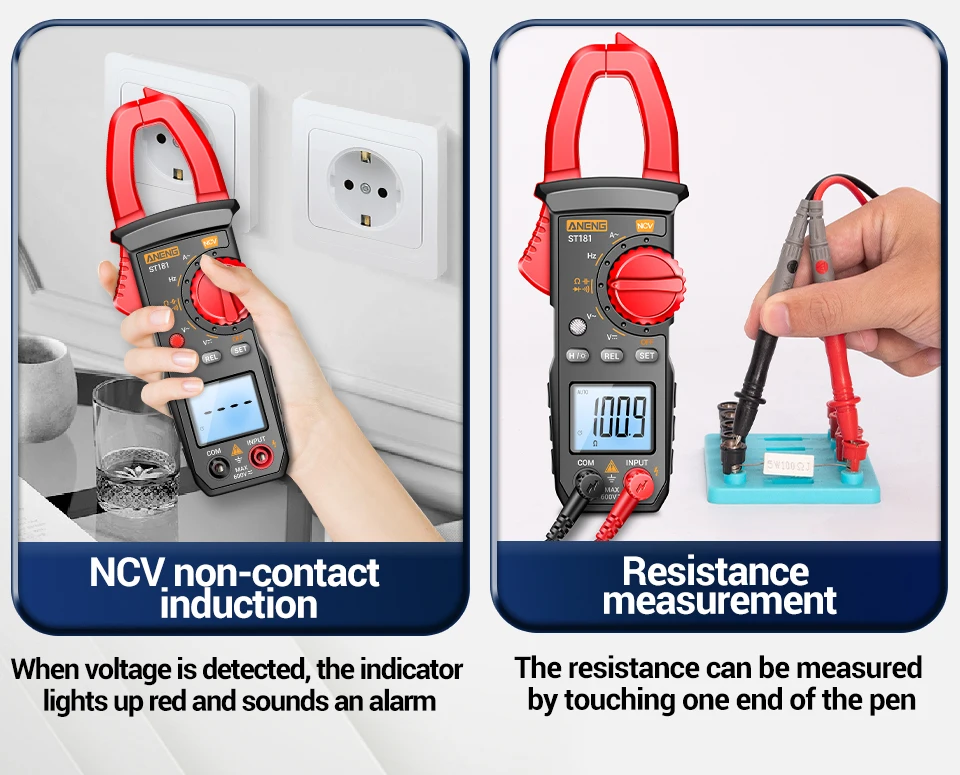 • Medición de alta precisión:La pinza amperimétrica ANENG ST181 proporciona mediciones precisas de voltaje y corriente, lo que la hace perfecta para trabajos eléctricos.