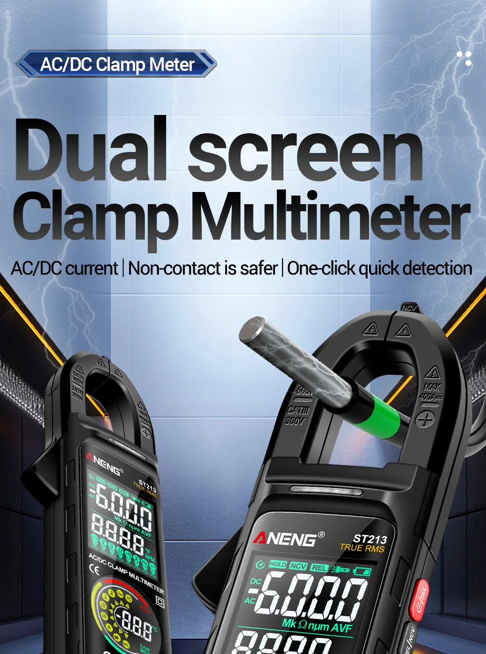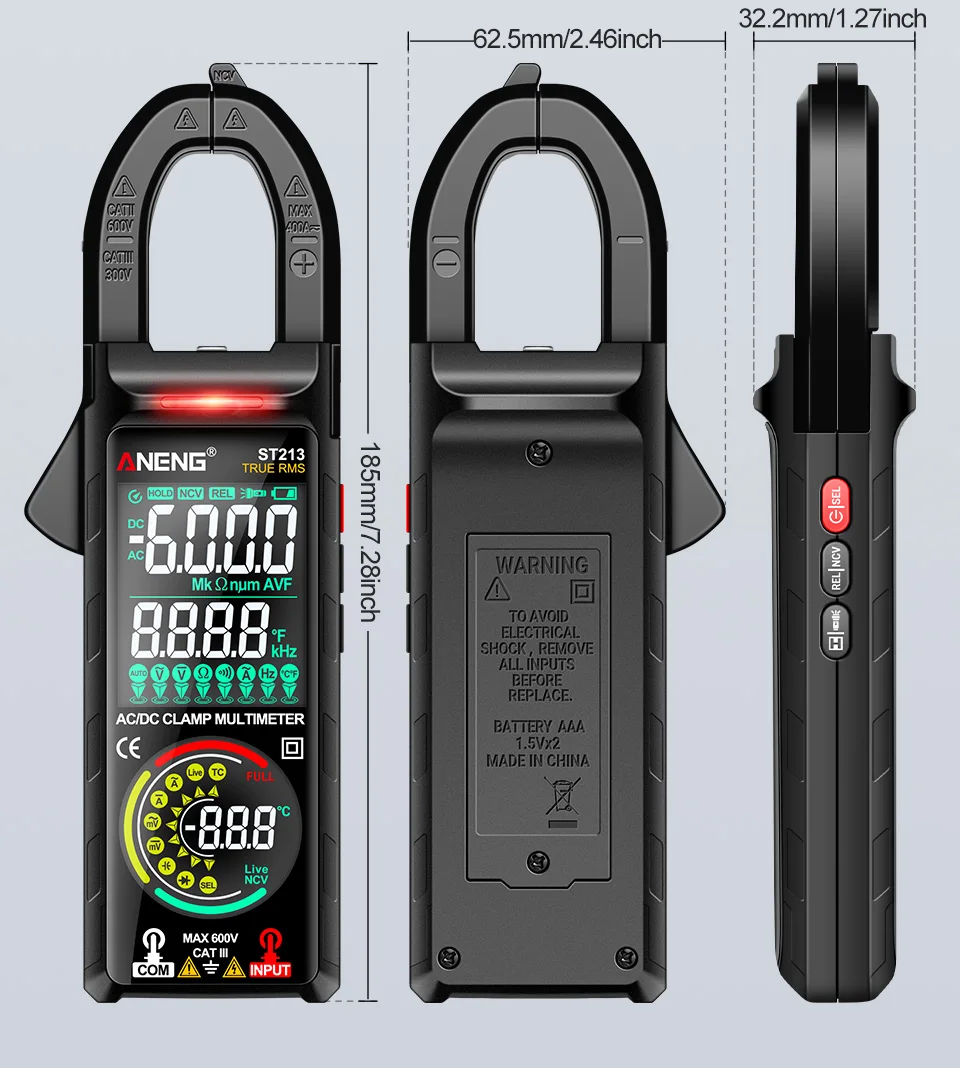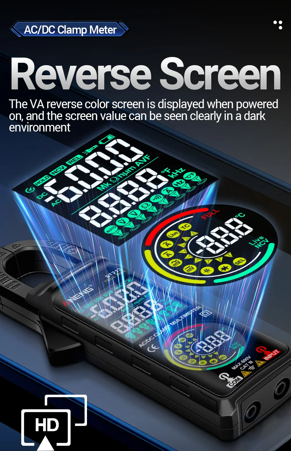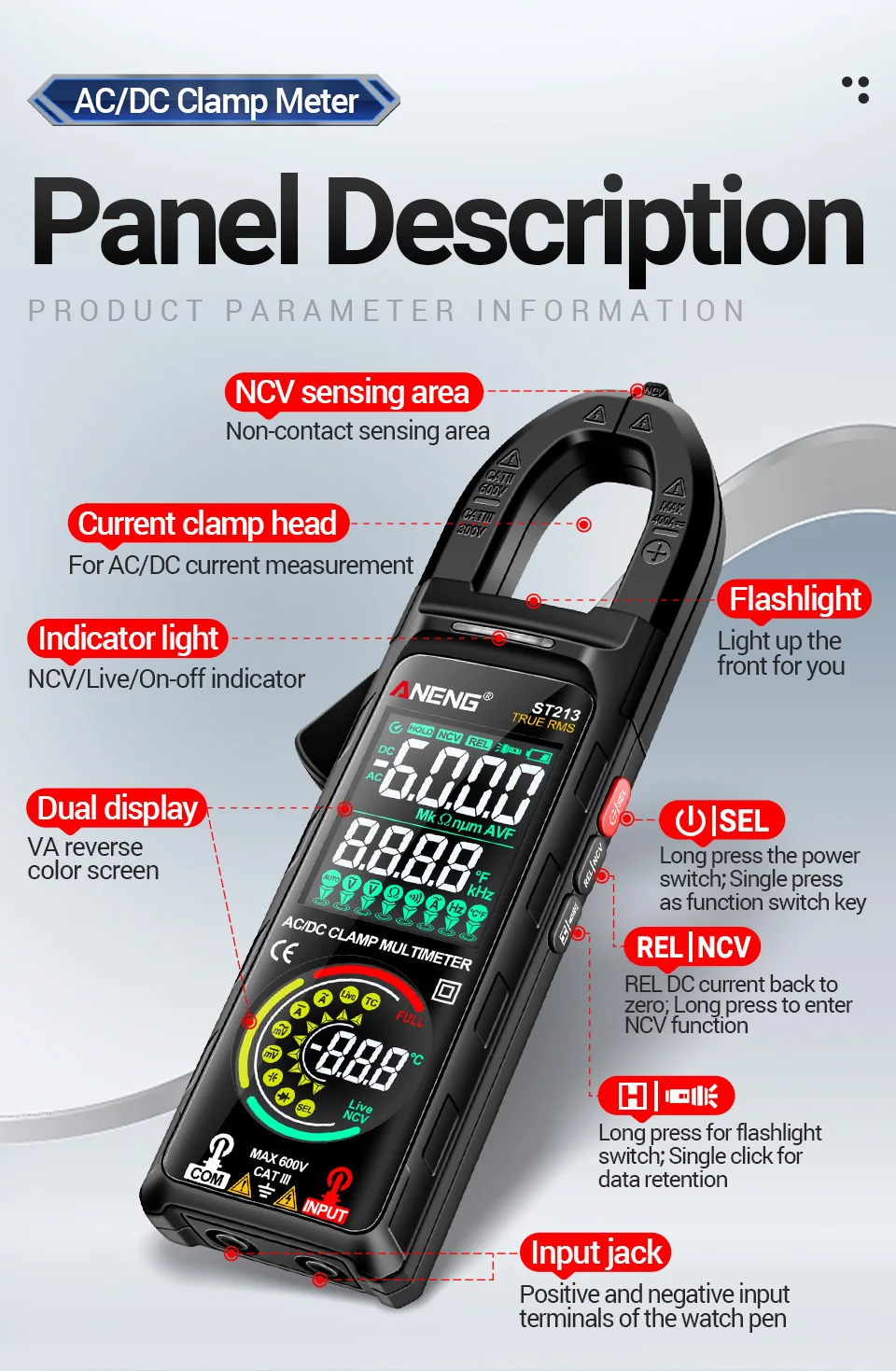 Comprar ANENG ST213 Clamp Meter VA Reverse Color Display Screen Multimeter CAT III 6000 Count True RMS Tester DC/AC Voltage Current Tool