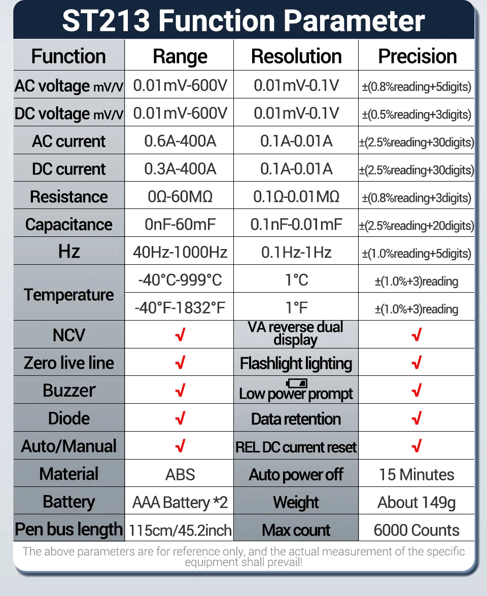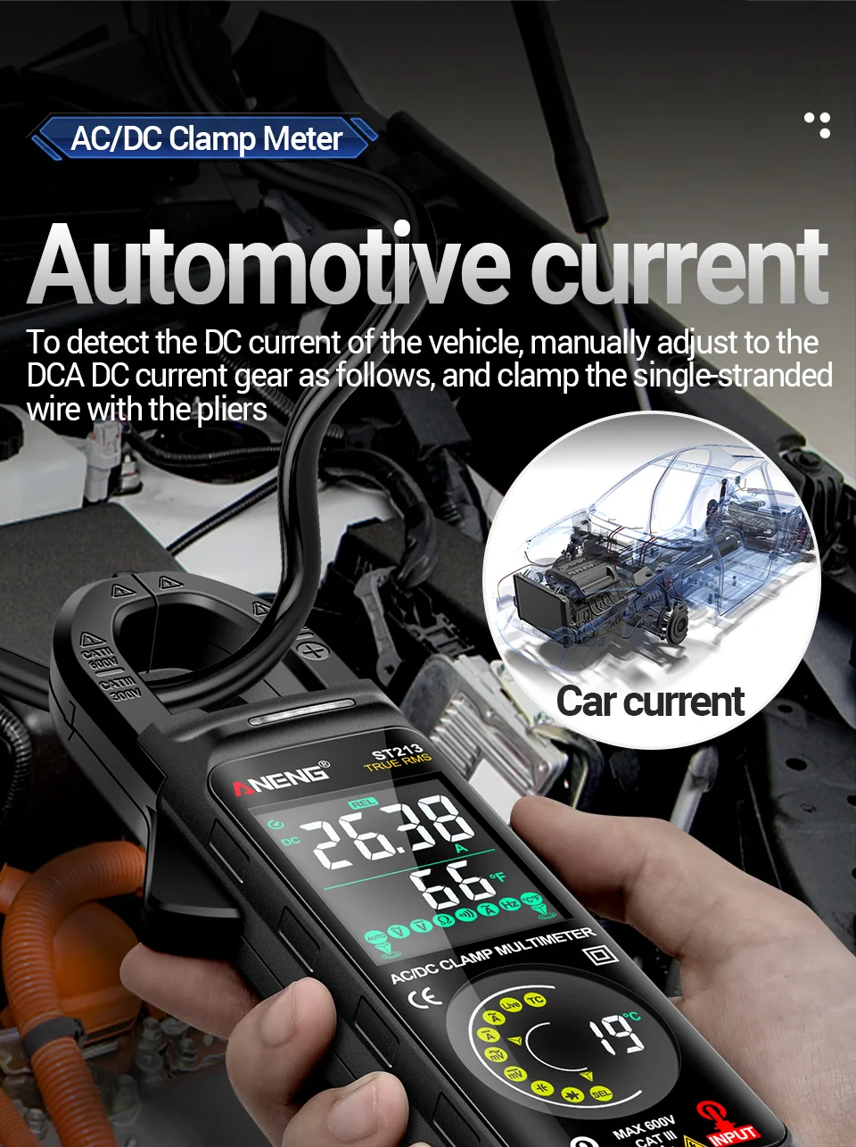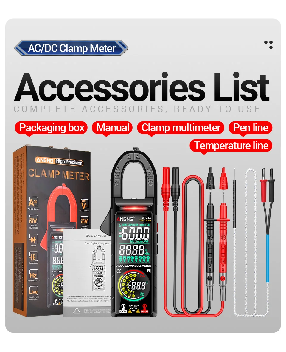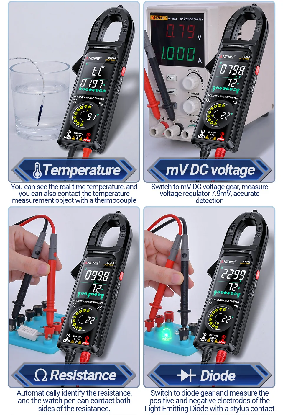Comprar ANENG ST213 Clamp Meter VA Reverse Color Display Screen Multimeter CAT III 6000 Count True RMS Tester DC/AC Voltage Current Tool