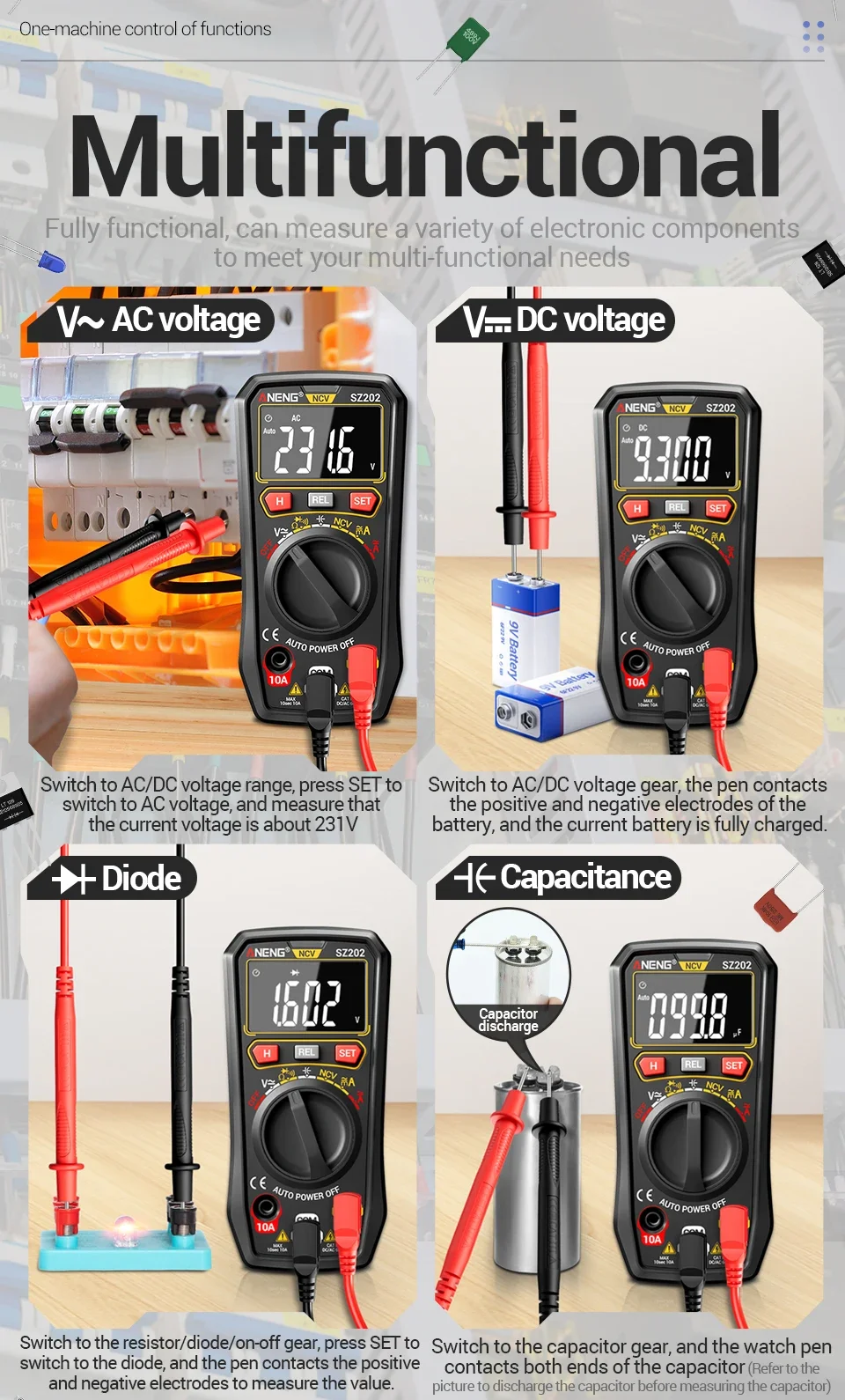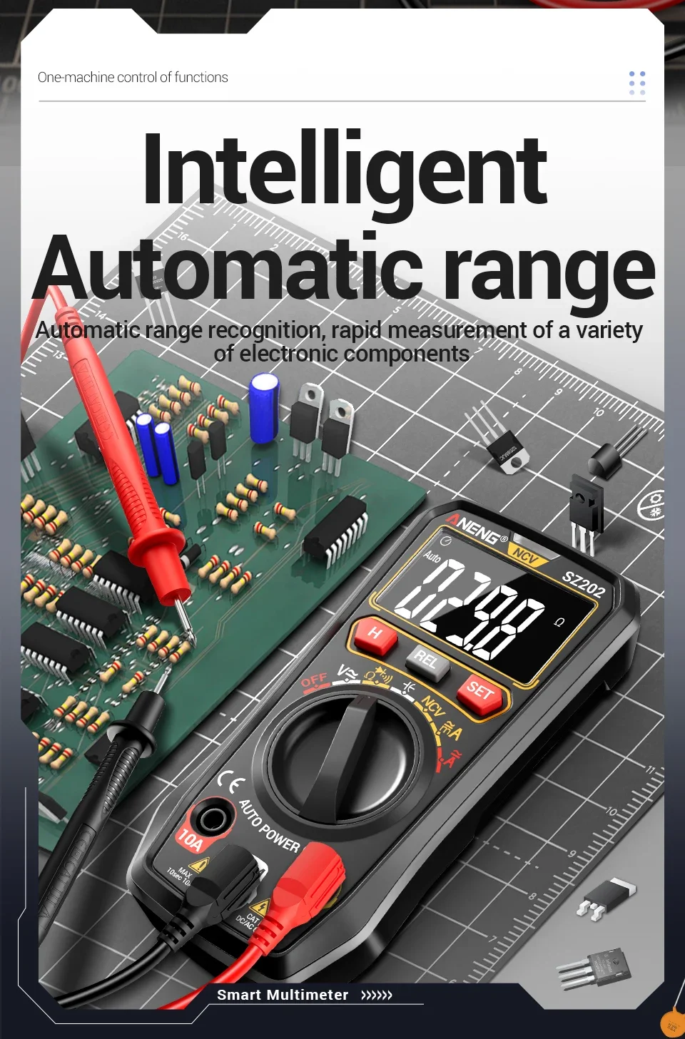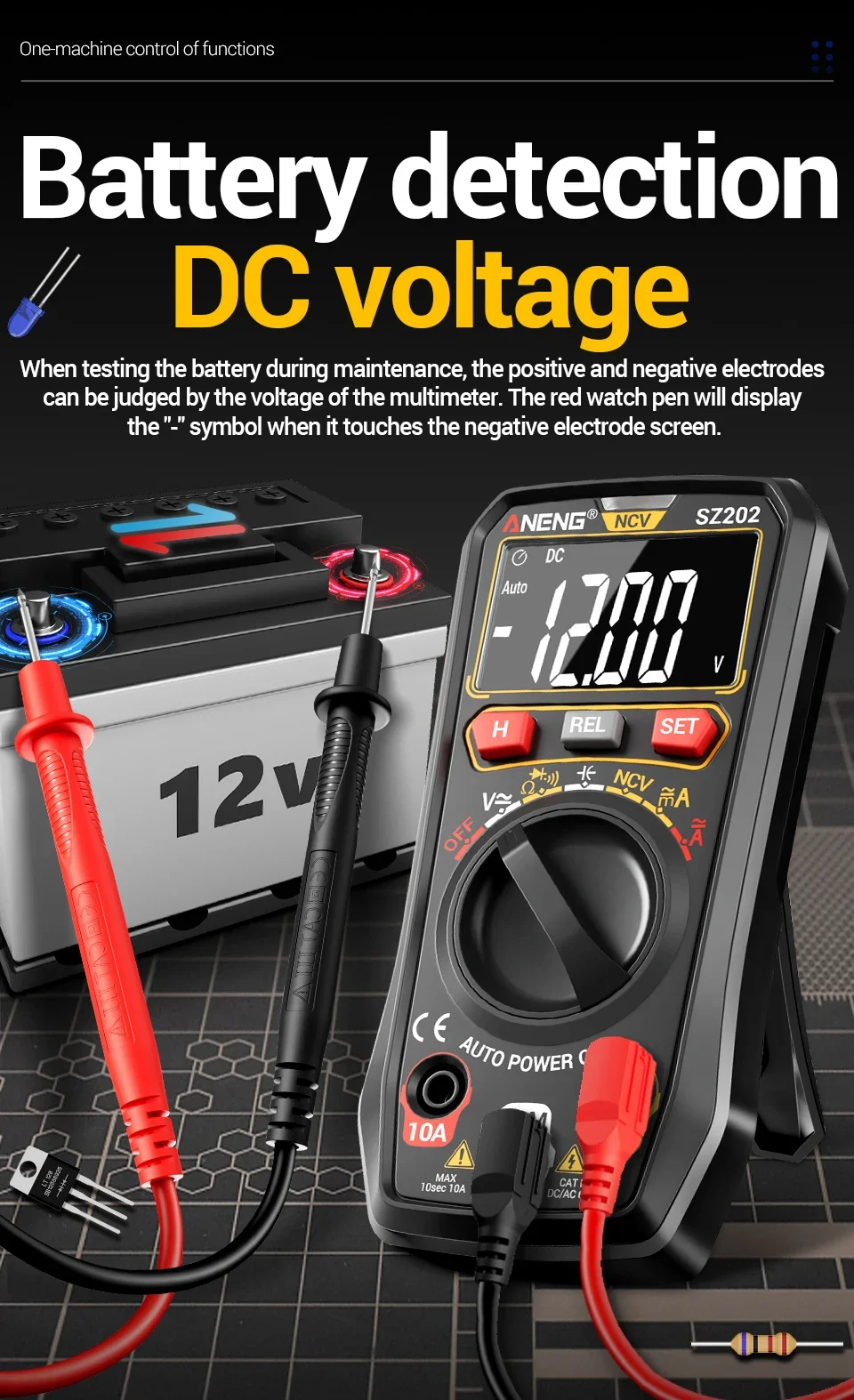 ANENG SZ202 Multímetro Digital Probador Voltaje/Resistencia + B18 Pluma de prueba de voltaje resaltado Inducción de voltaje NCV Juego de herramientas de detector de electricista profesional multifuncional