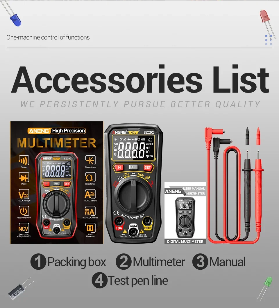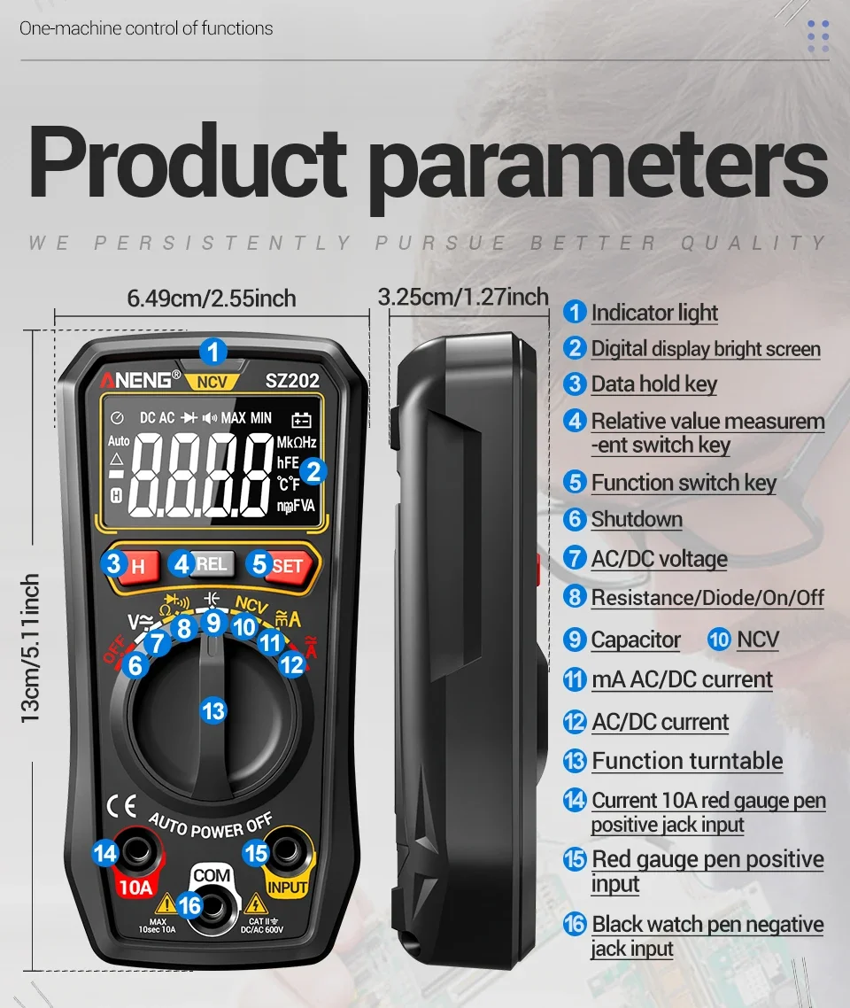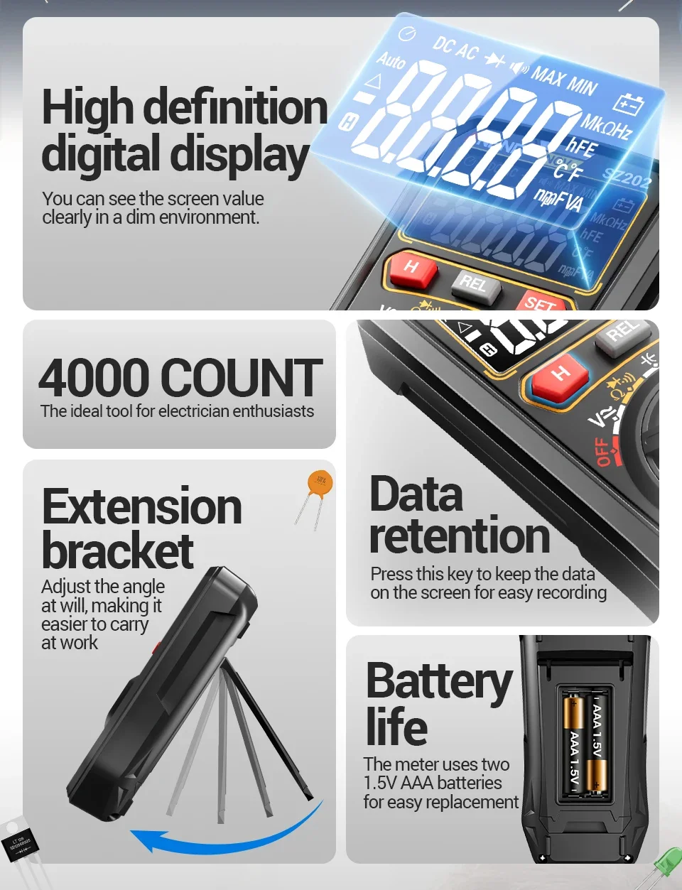ANENG SZ202 Multímetro Digital Probador Voltaje/Resistencia + B18 Pluma de prueba de voltaje resaltado Inducción de voltaje NCV Juego de herramientas de detector de electricista profesional multifuncional
