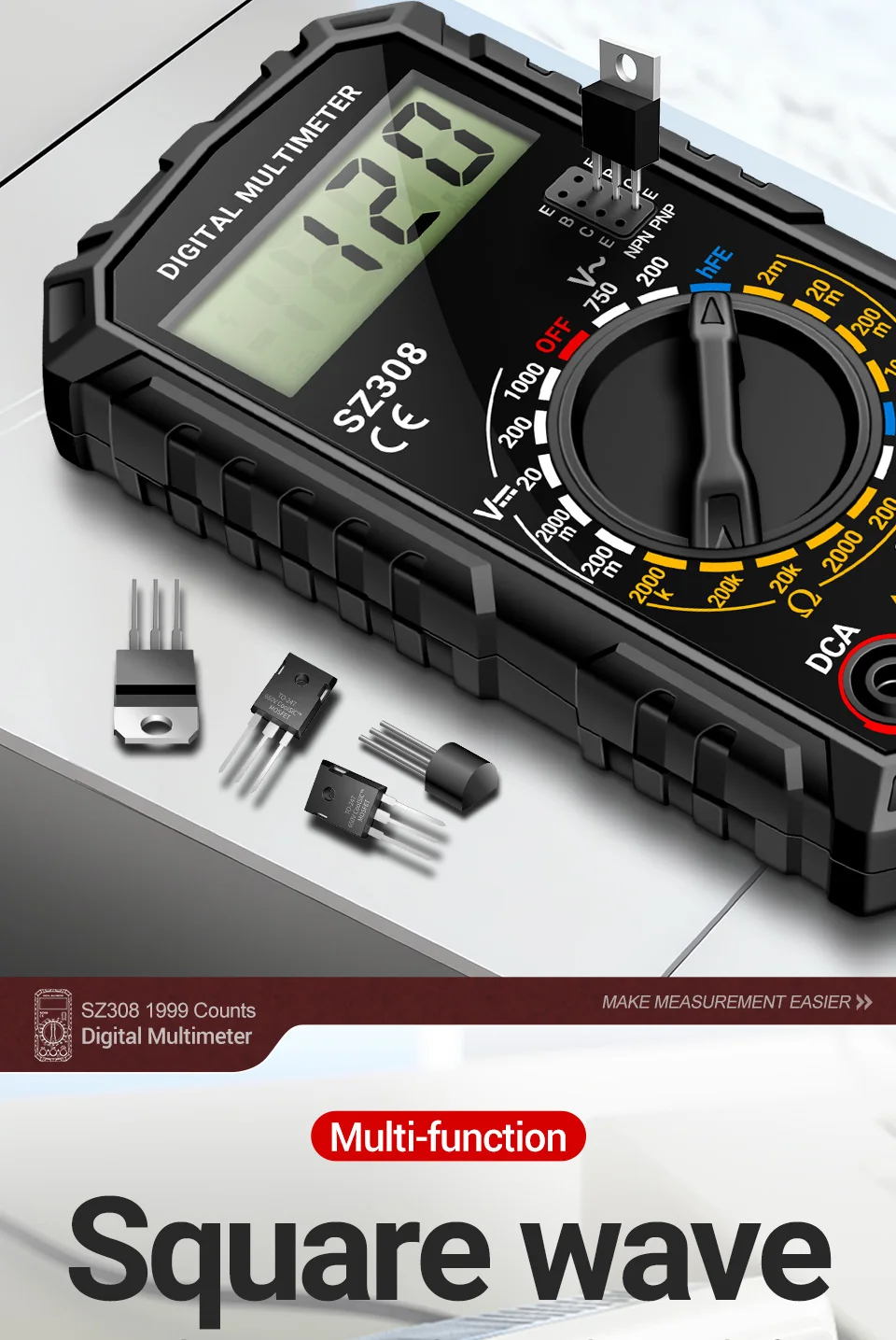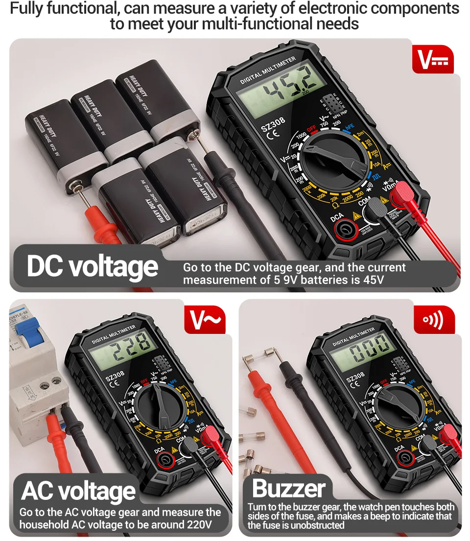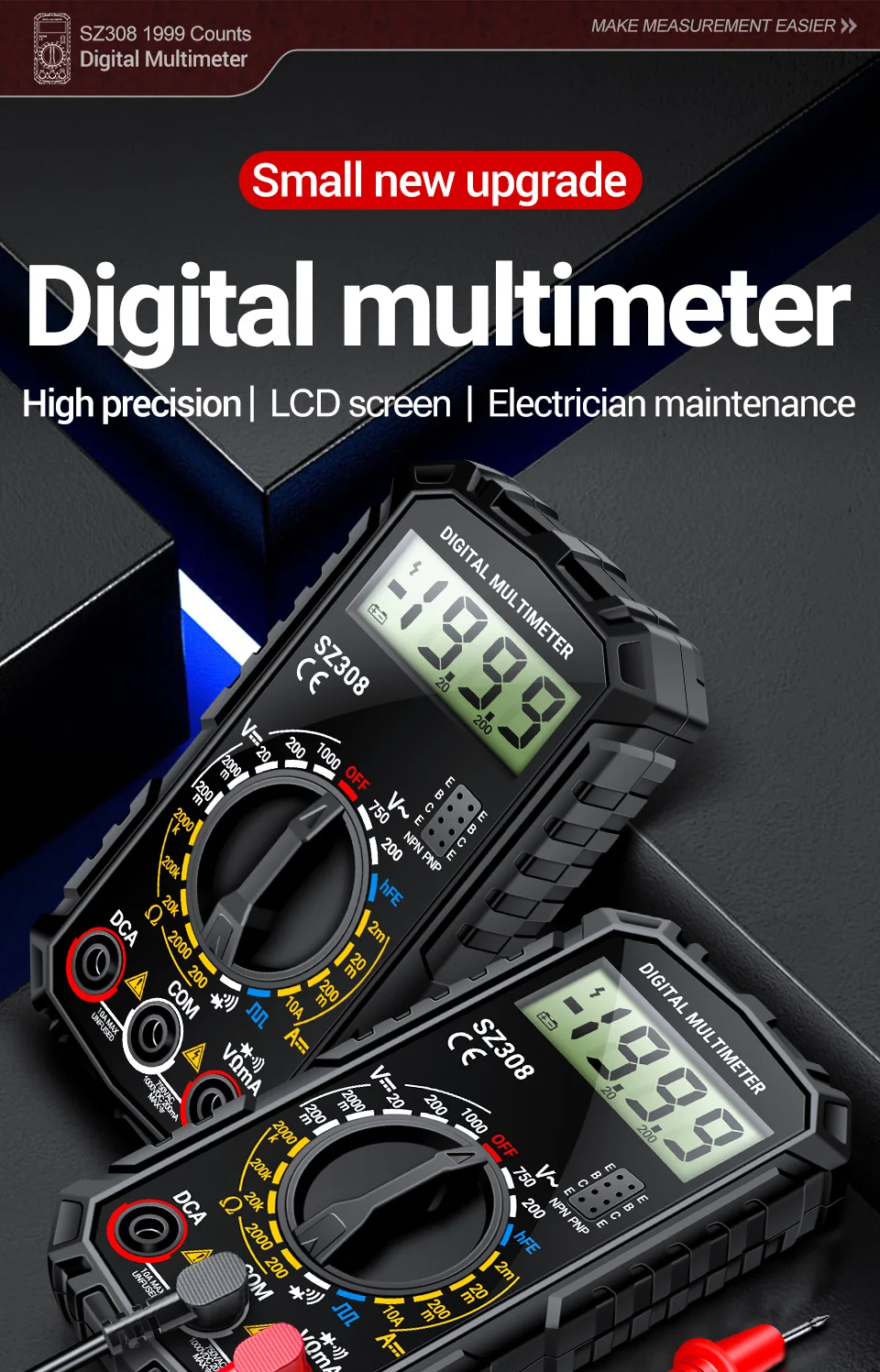 ANENG SZ308 1999 multímetro Digital de conteo AC/DC herramientas de prueba de multímetro de resistencia de corriente de voltaje multifunción de alta precisión