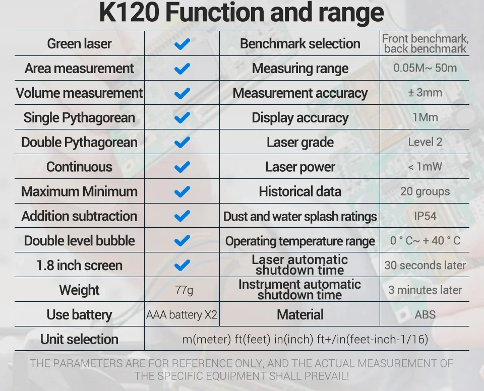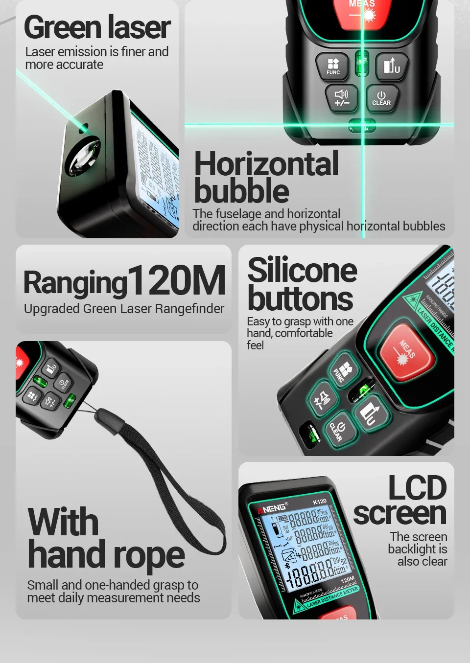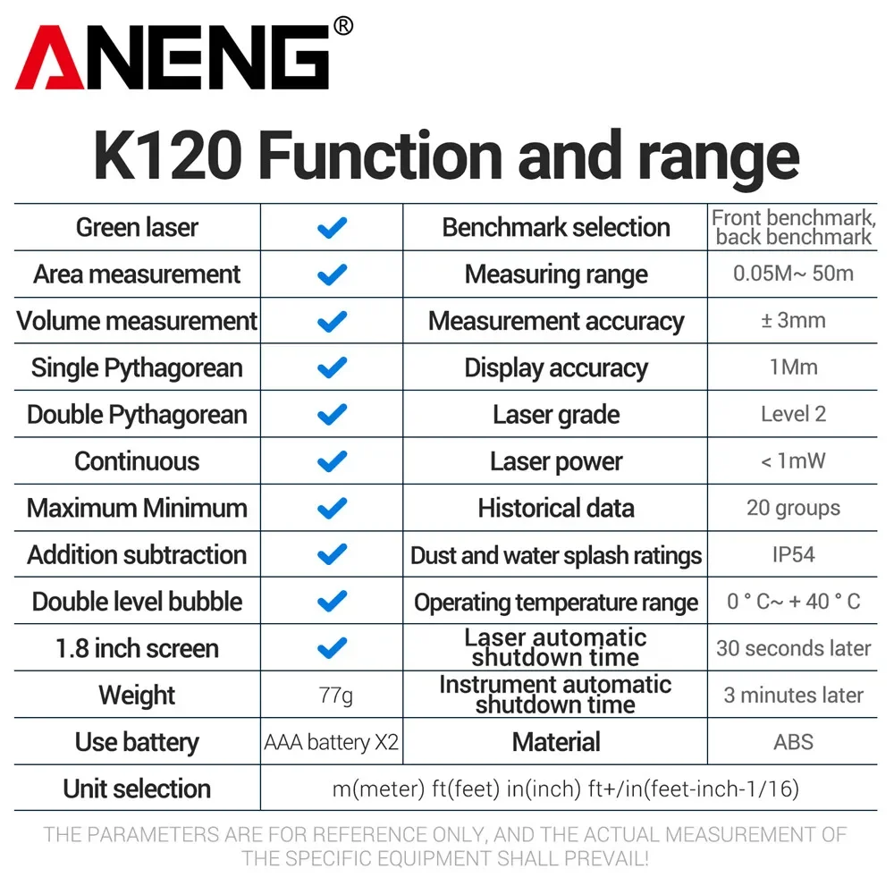 Comprar ANENG telémetro láser K50/70/100/120 medida de volumen/área ± 3mm regla electrónica medición precisión diastímetro herramientas de prueba