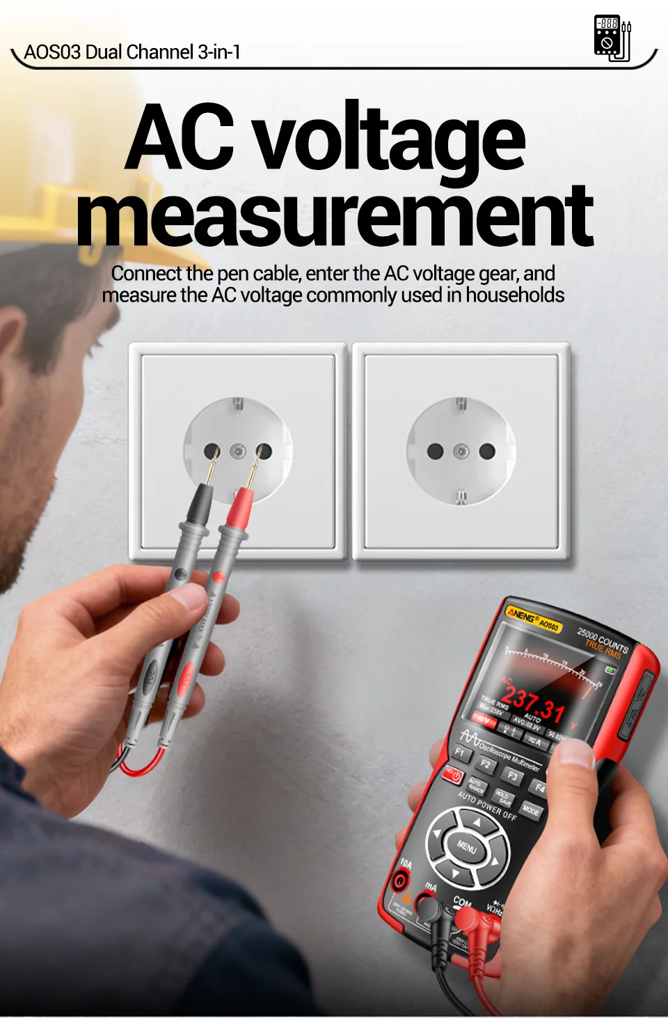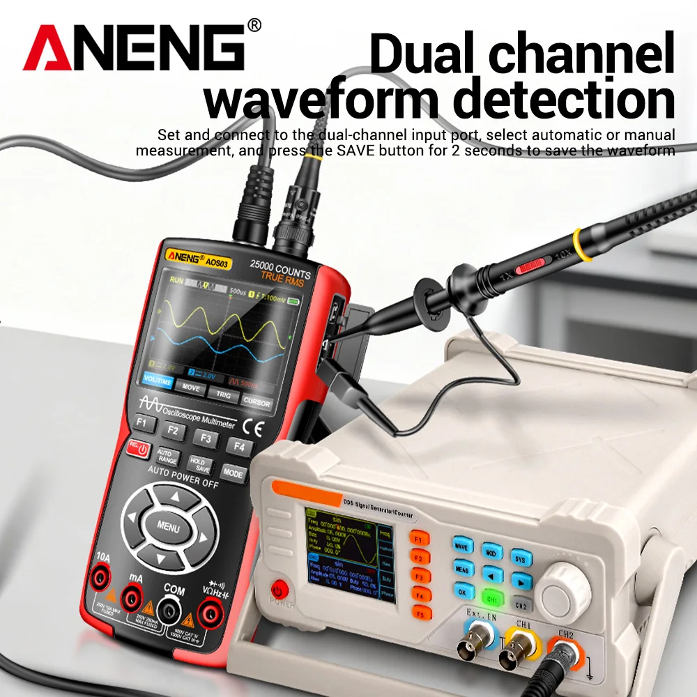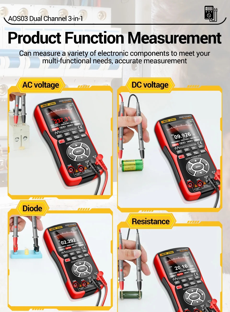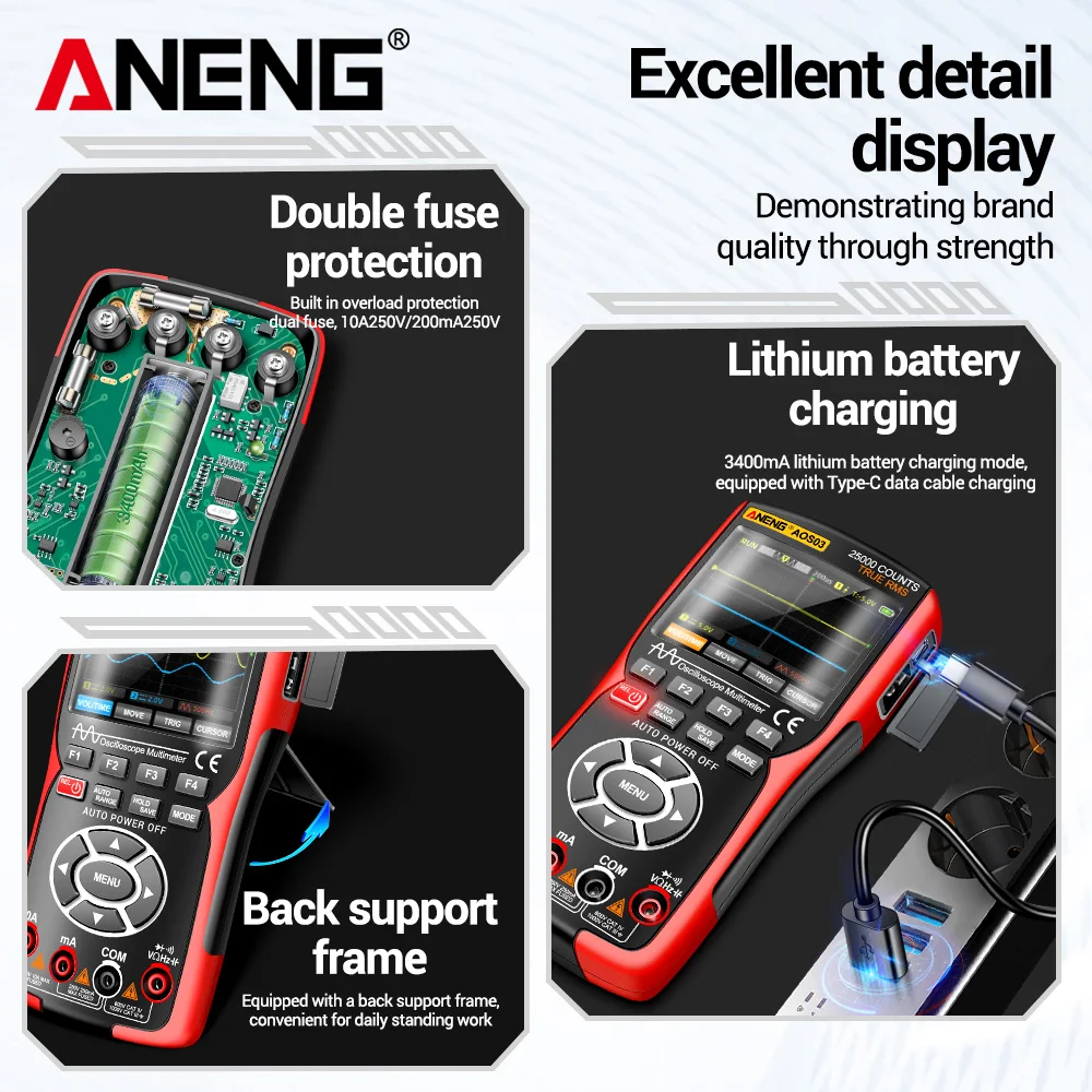 ANENG Probador de multímetro osciloscopio recargable 3 en 1 Ancho de banda de doble canal 50 MHz, muestreo 200 M/280 MSa/s Herramientas de electricista AOS03