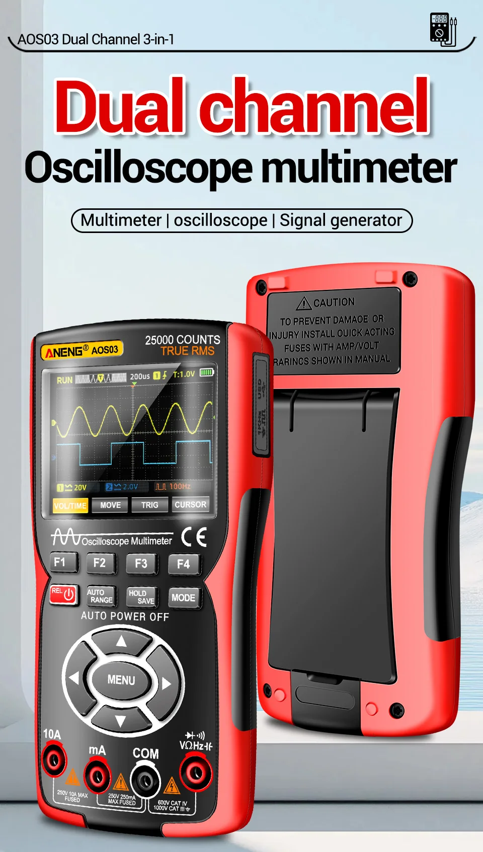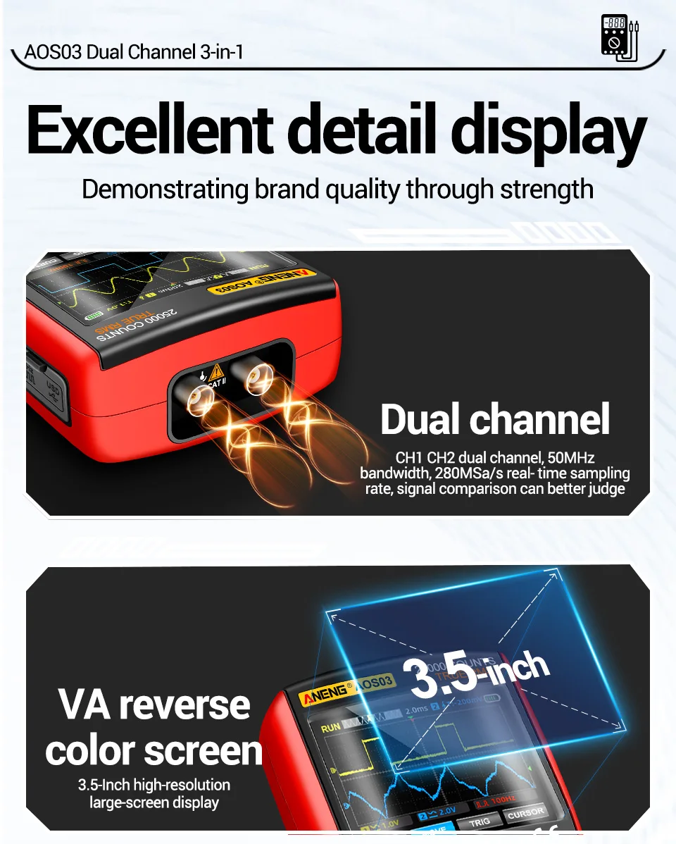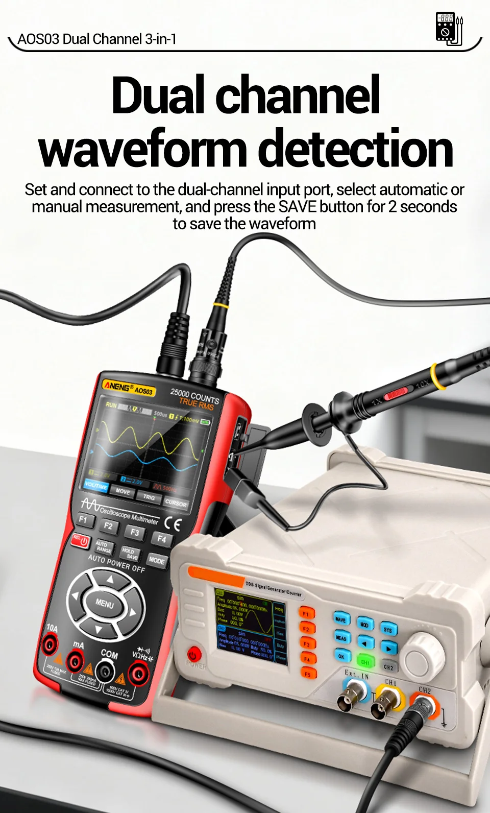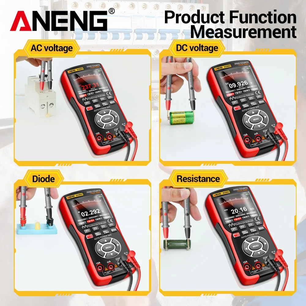 ANENG Probador de multímetro osciloscopio recargable 3 en 1 Ancho de banda de doble canal 50 MHz, muestreo 200 M/280 MSa/s Herramientas de electricista AOS03