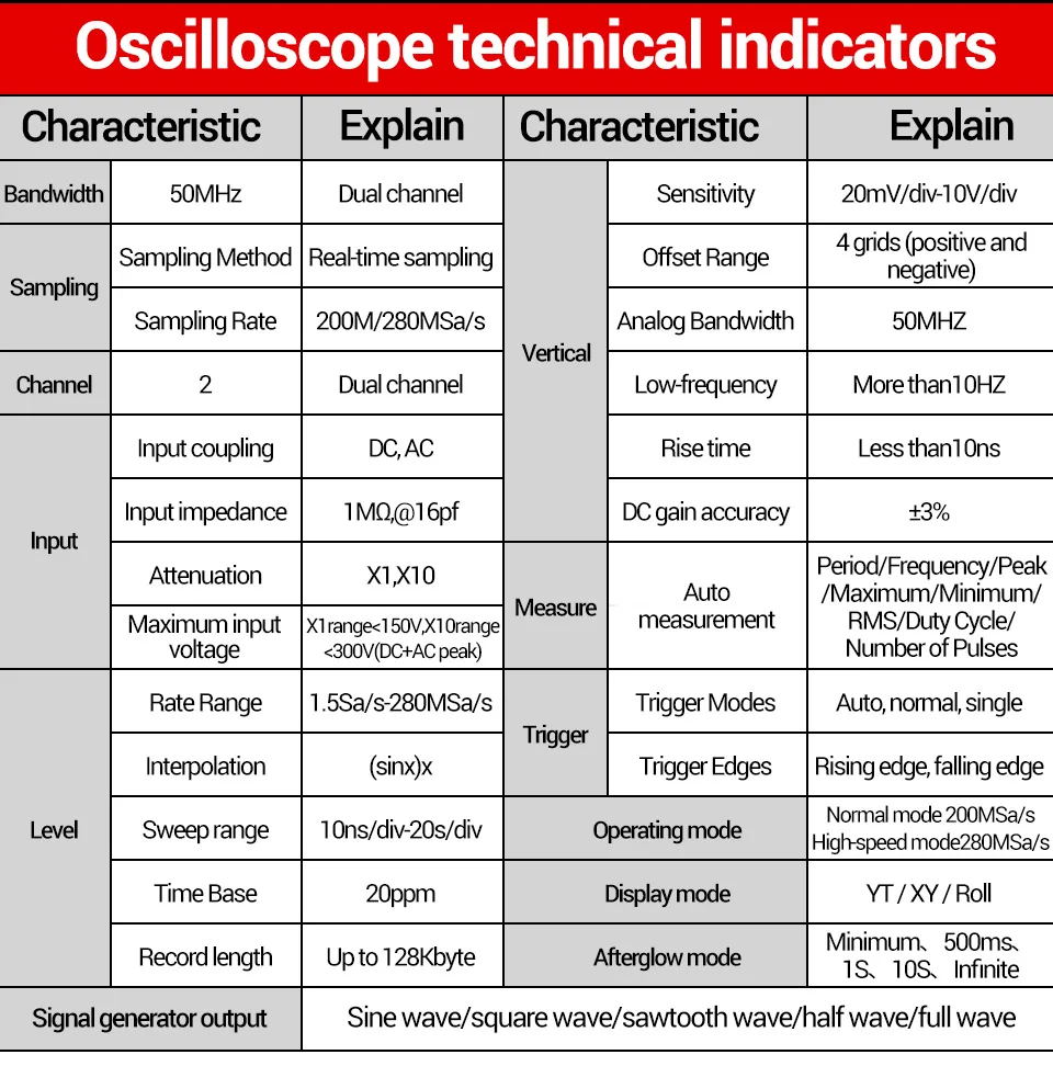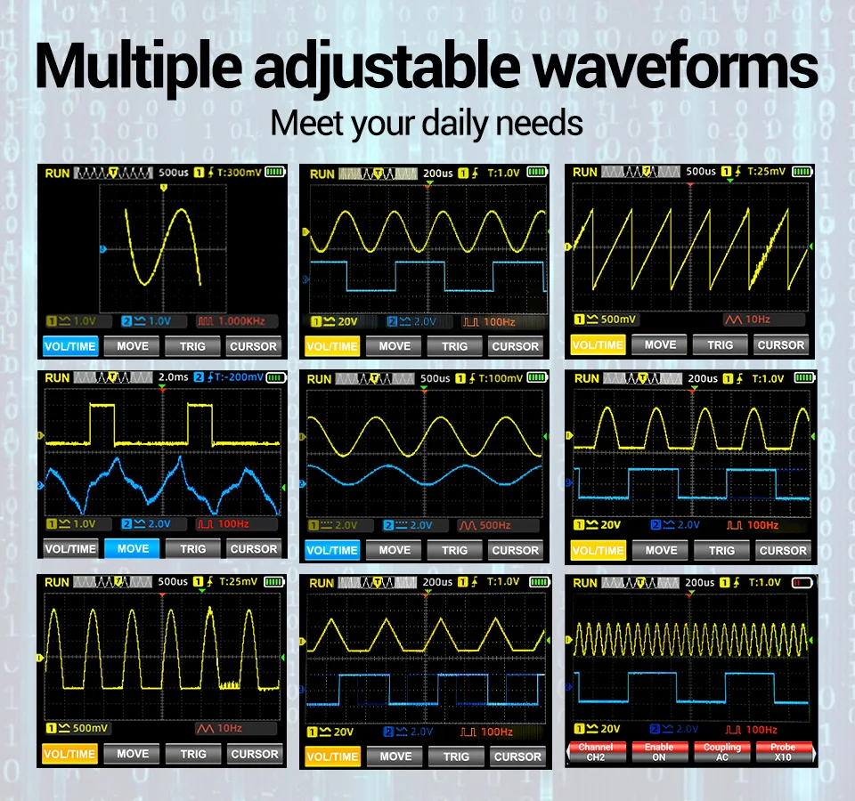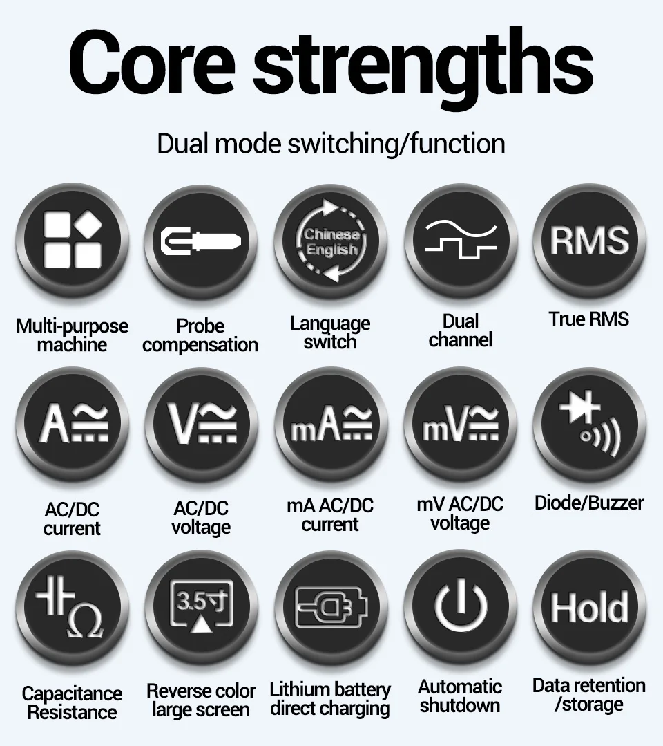 Este osciloscopio portátil adopta un proceso de moldeo por inyección dual, que presenta una apariencia hermosa, tamaño compacto, portabilidad conveniente y operación flexible.La pantalla utiliza un 3.Pantalla a color IPS de vista completa de 5 pulgadas, con una pantalla de multímetro de un osciloscopio, un generador de señal y un multímetro en un dispositivo tres en uno.Con un rendimiento superior y una funcionalidad potente, se puede utilizar en varios escenarios de medición, satisfaciendo una amplia gama de necesidades de medición del usuario.