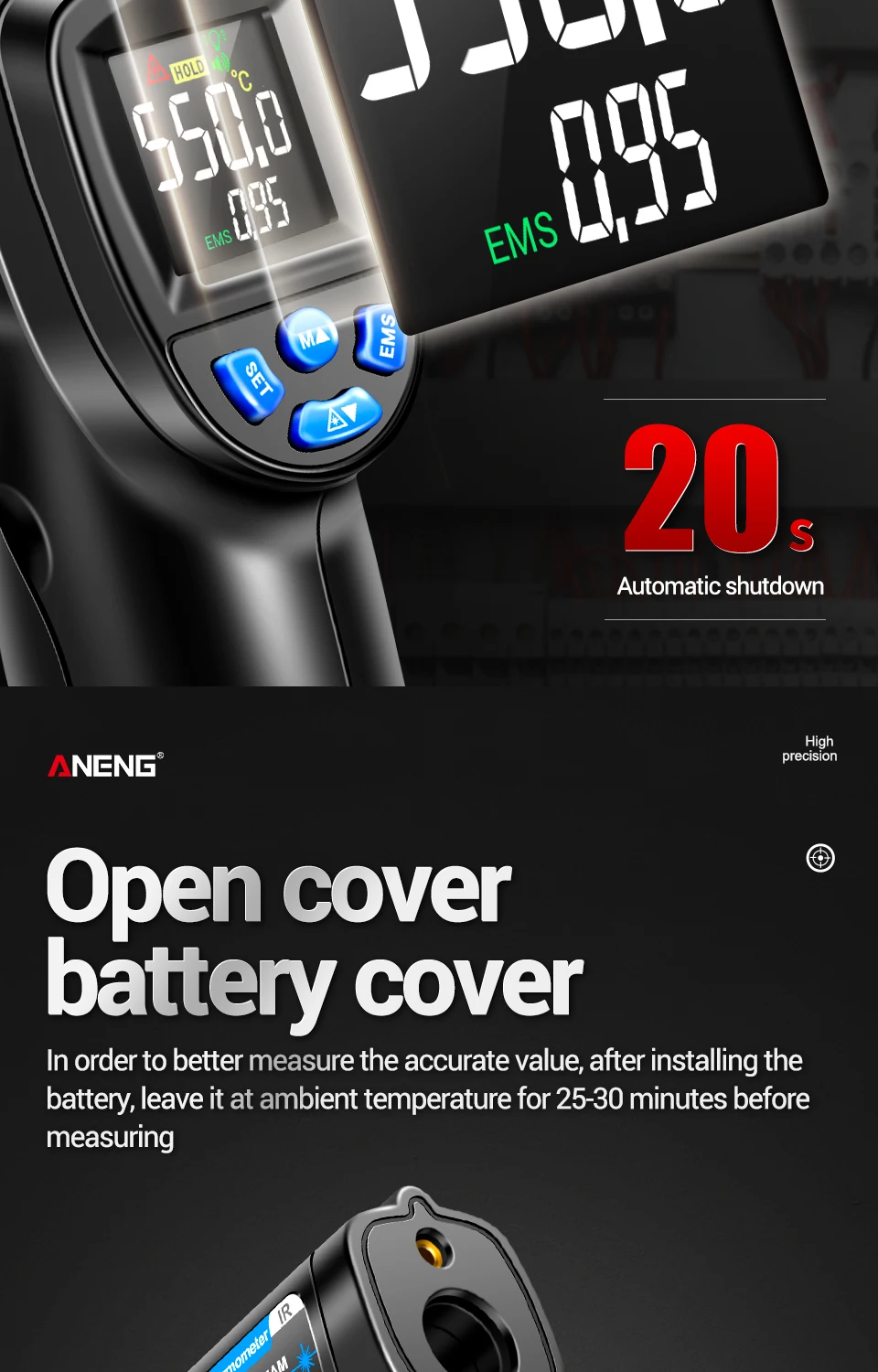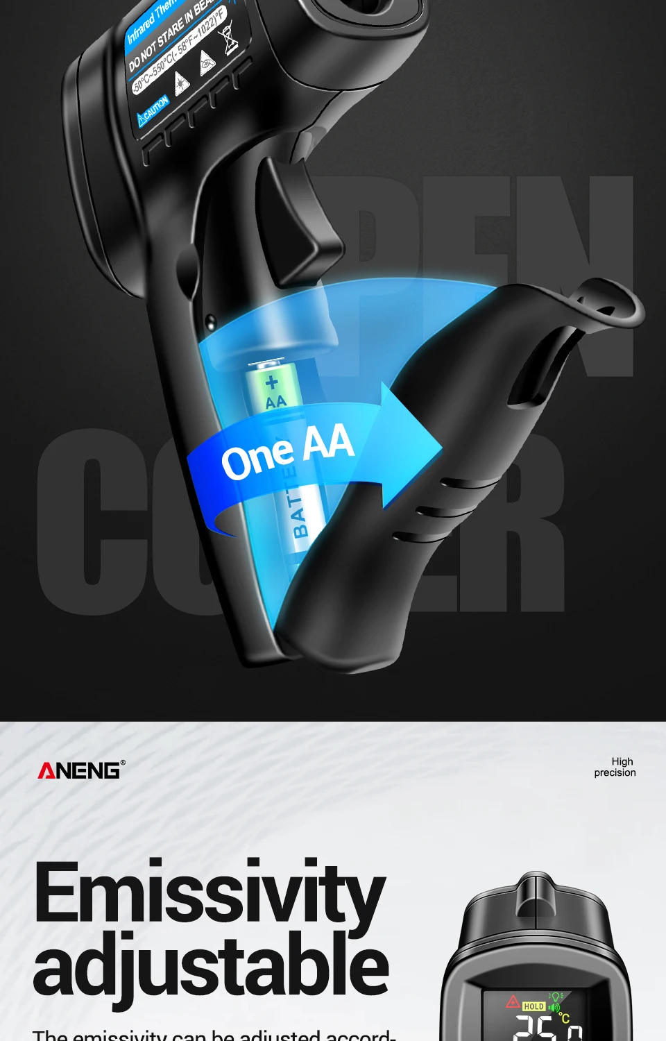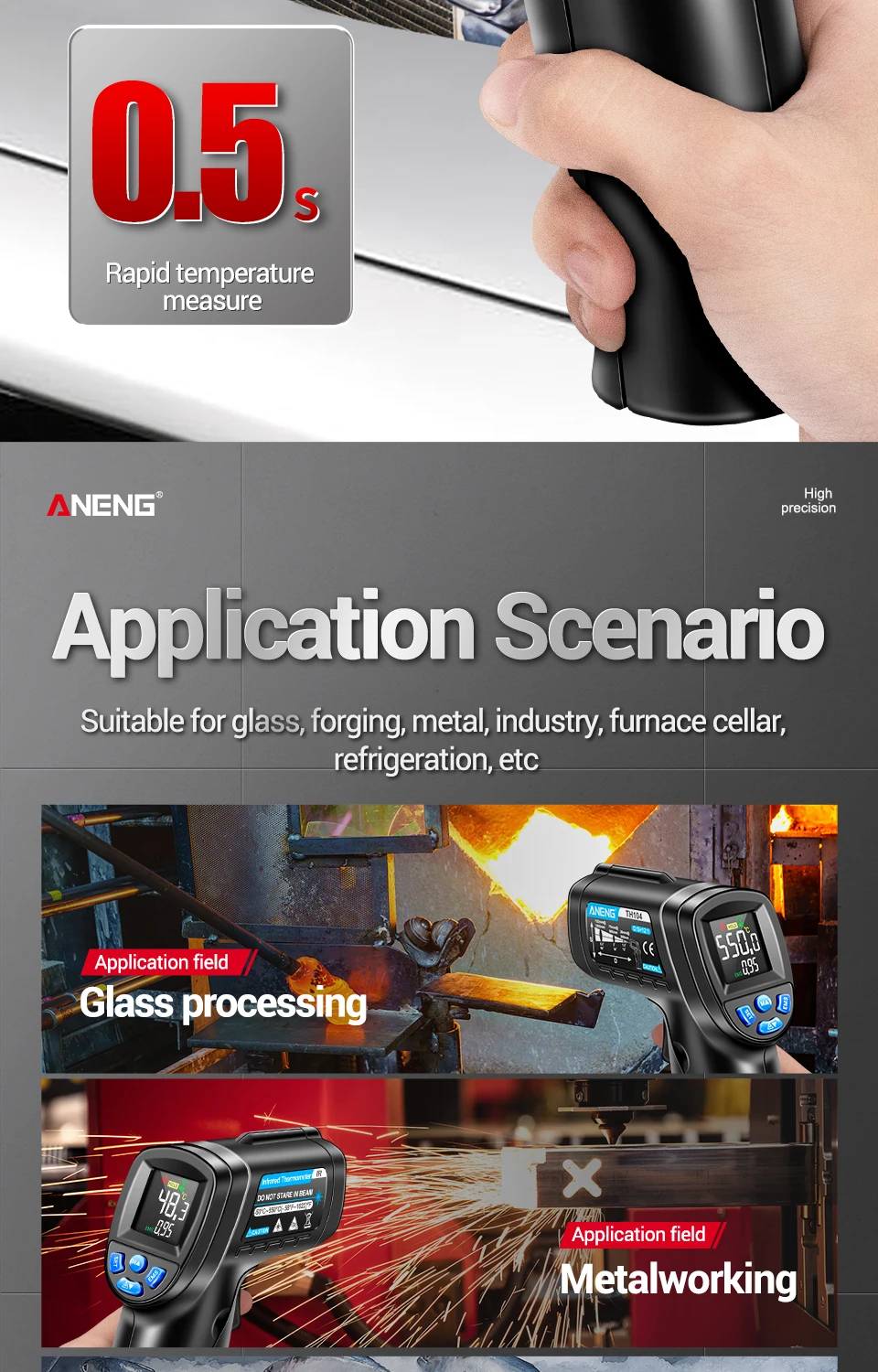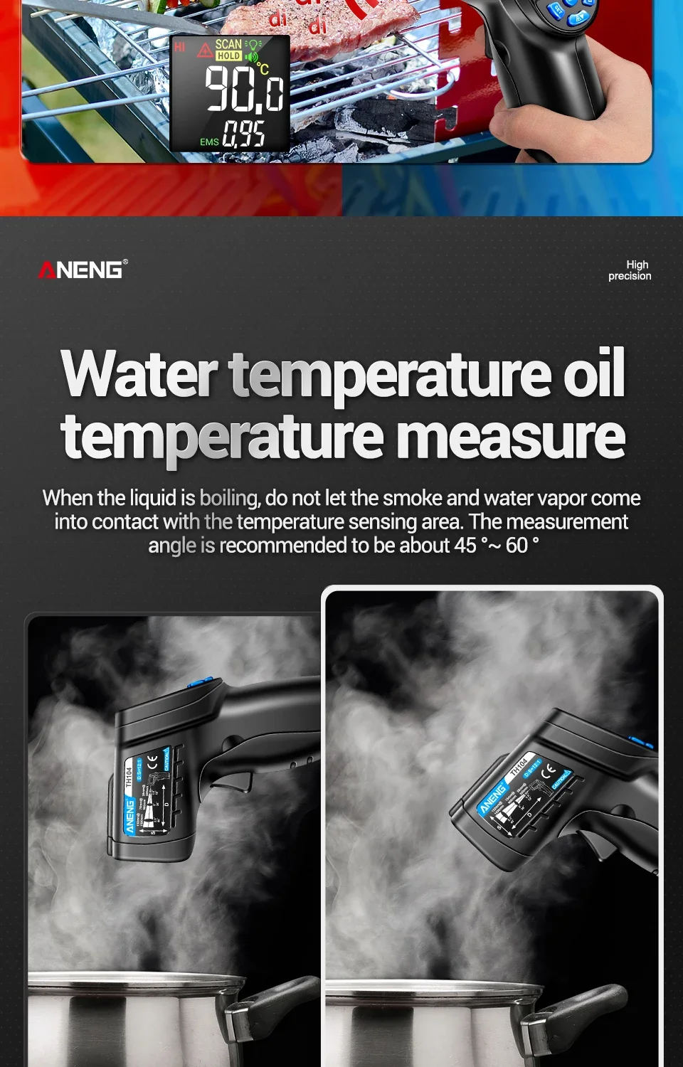 ANENG TH104 Termómetro Termohigrómetro -50~550℃ Medidor láser infrarrojo Pistola de temperatura Pantalla digital Probador sin contacto