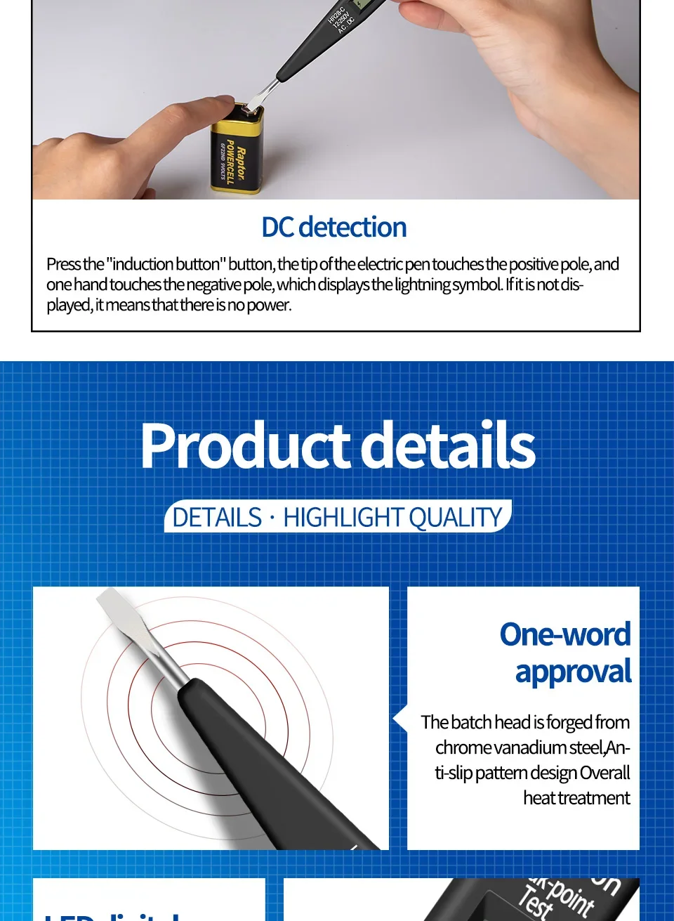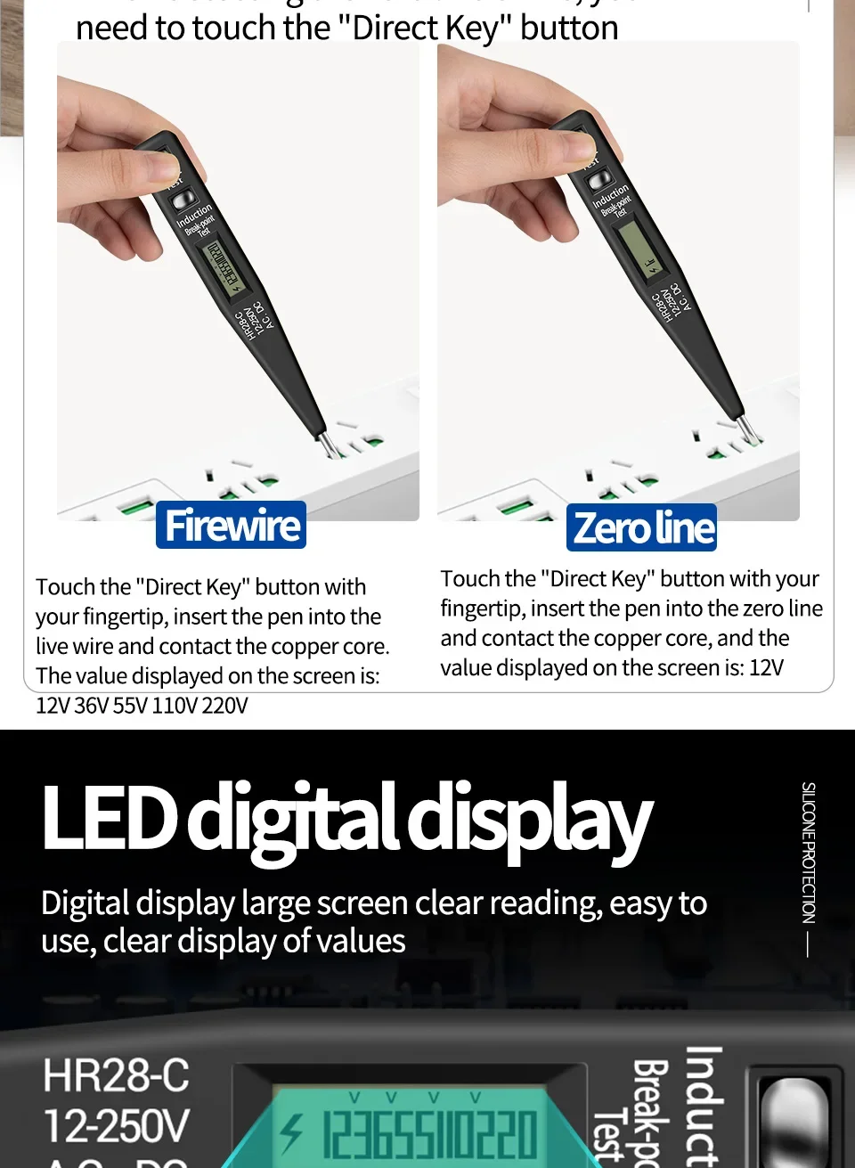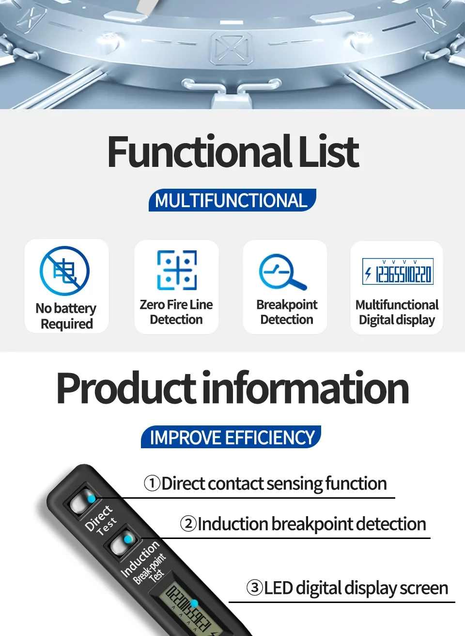 Pluma probadora sin contacto, Detector de CC, indicador portátil de detección de punto de interrupción, herramientas de prueba de continuidad de inductancia
