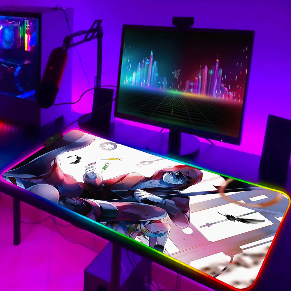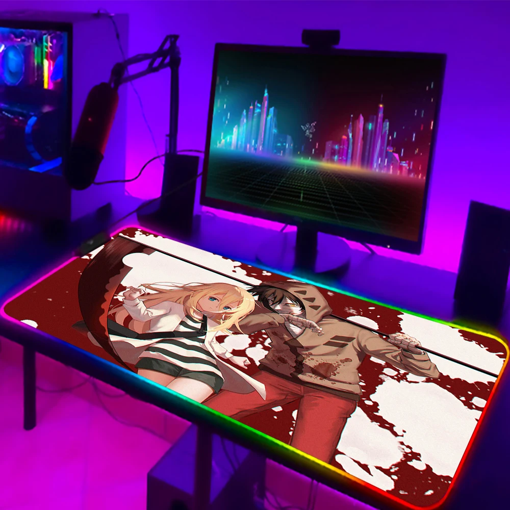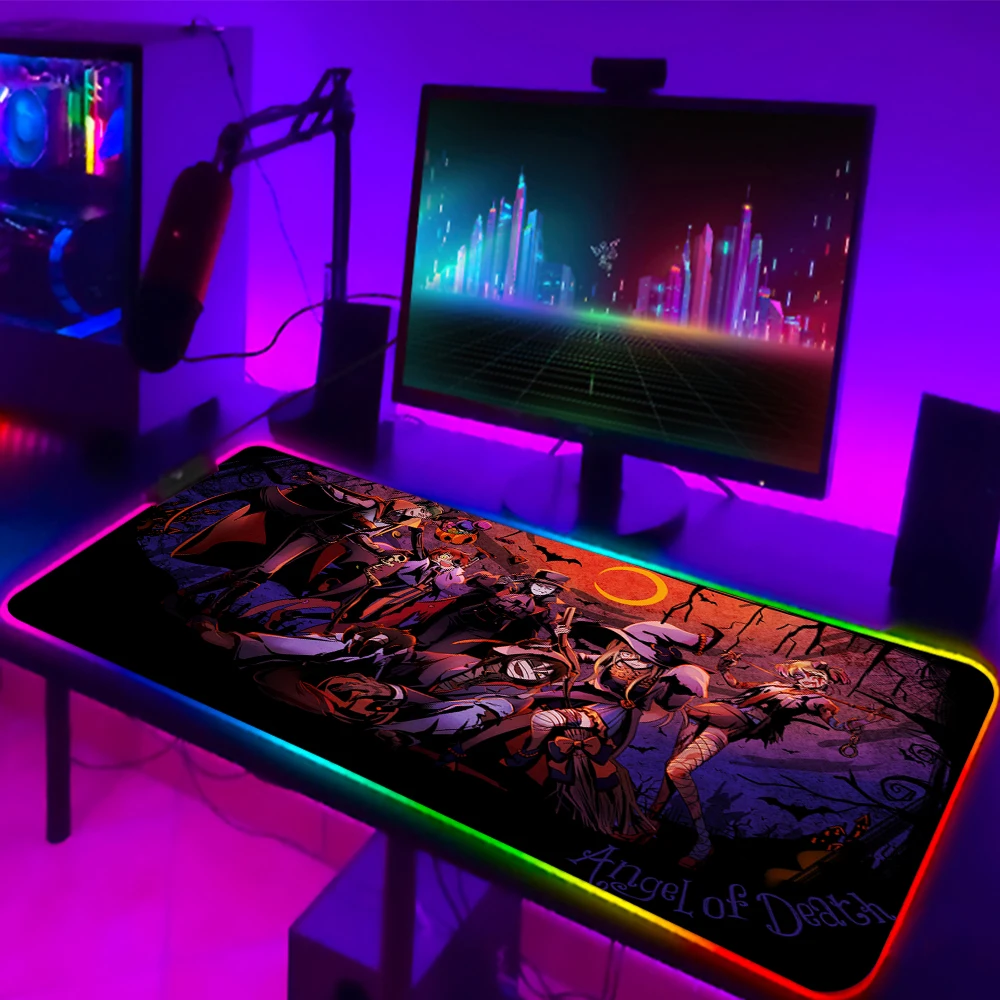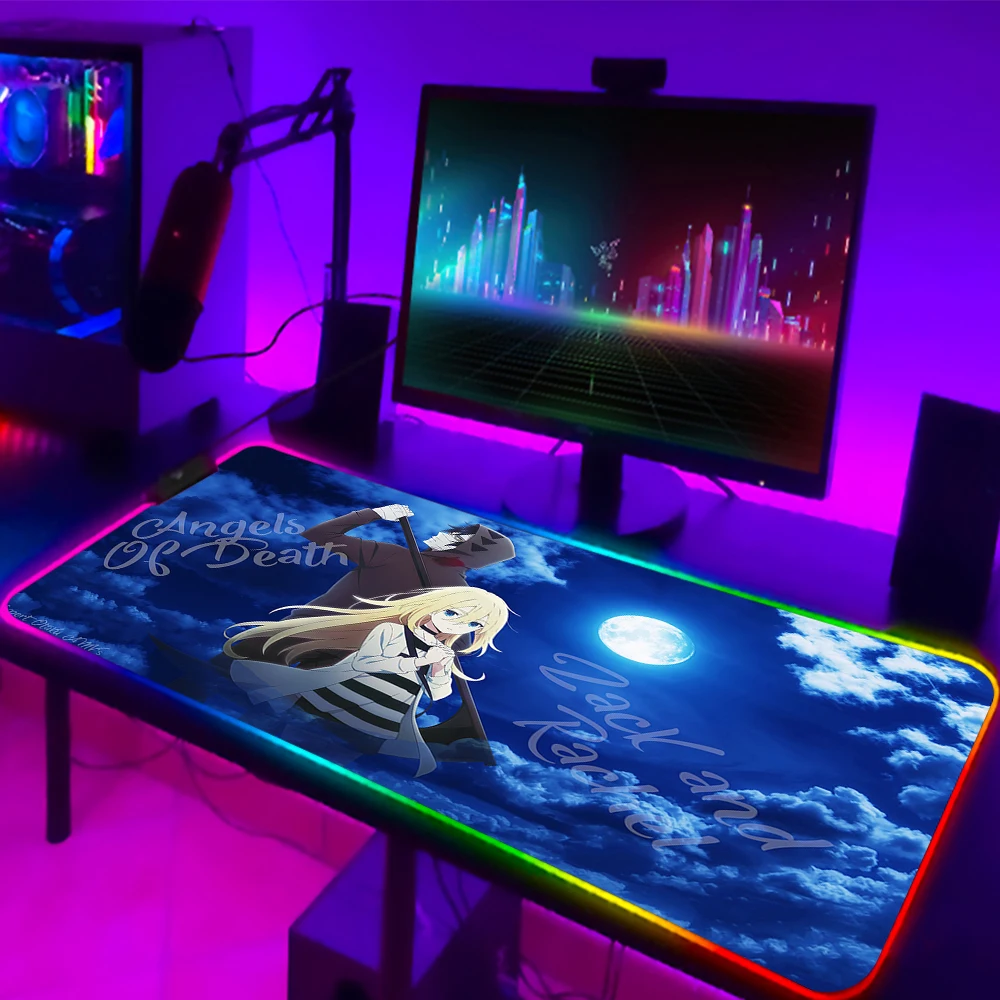 Comprar Angels of Death-alfombrillas de ratón RGB para ordenador portátil, accesorios para juegos, alfombrilla de ratón extendida, Anime, teclados, alfombrilla de ratón