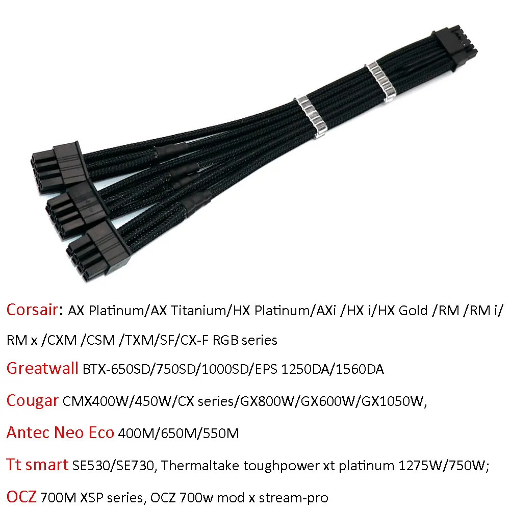 Comprar Angitu-Cable de alimentación prémium personalizado, 12VHPWR, 12 + 4/16 pines a 3x8 pines CPU/ATX/EPS macho PSU, Cable Modular para Corsair PSU 16awg