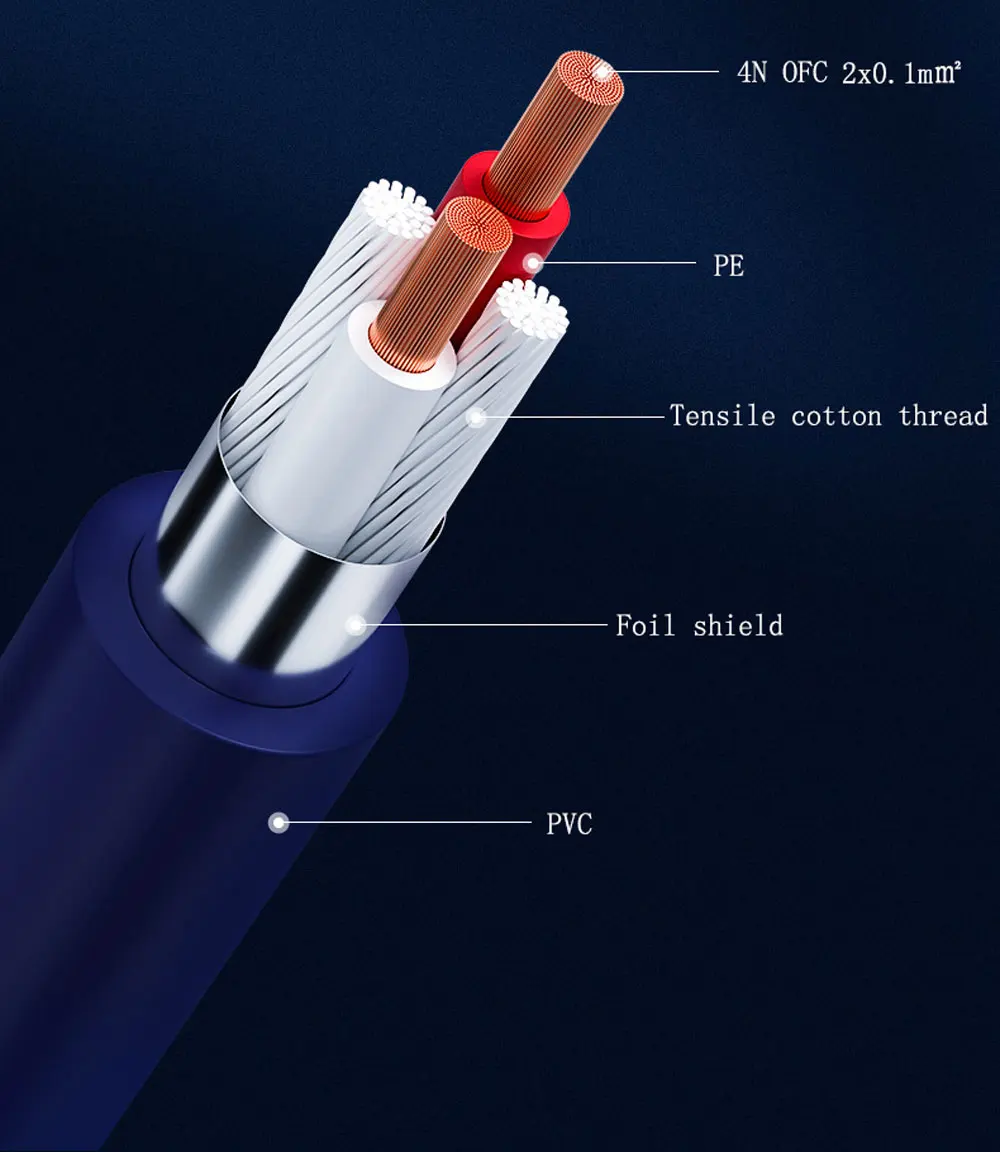 * El cable es cobre libre de oxígeno 4N blindado por alta fidelidad (OFC), cable de 2x1,0 mm2.