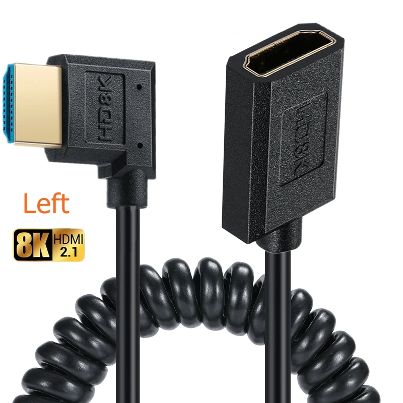 Comprar Ángulo de 90 grados extremo delgado/delgado 8K Ultra HDMI M-F alta velocidad 60Hz 4K120Hz 144Hz HD macho a hembra Cable de resorte de extensión HDMI