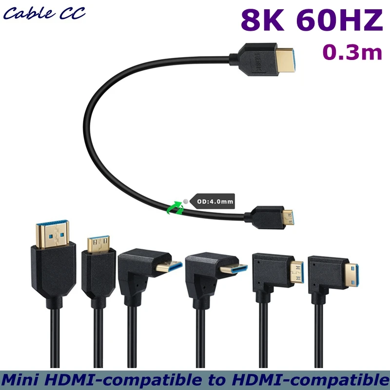 Línea muy delgada OD4,0mm, cámara digital, mini cable HDMI versión 2.1, cable HD 8k@60HZ, cable de datos HDMI HD de 0,3 metros