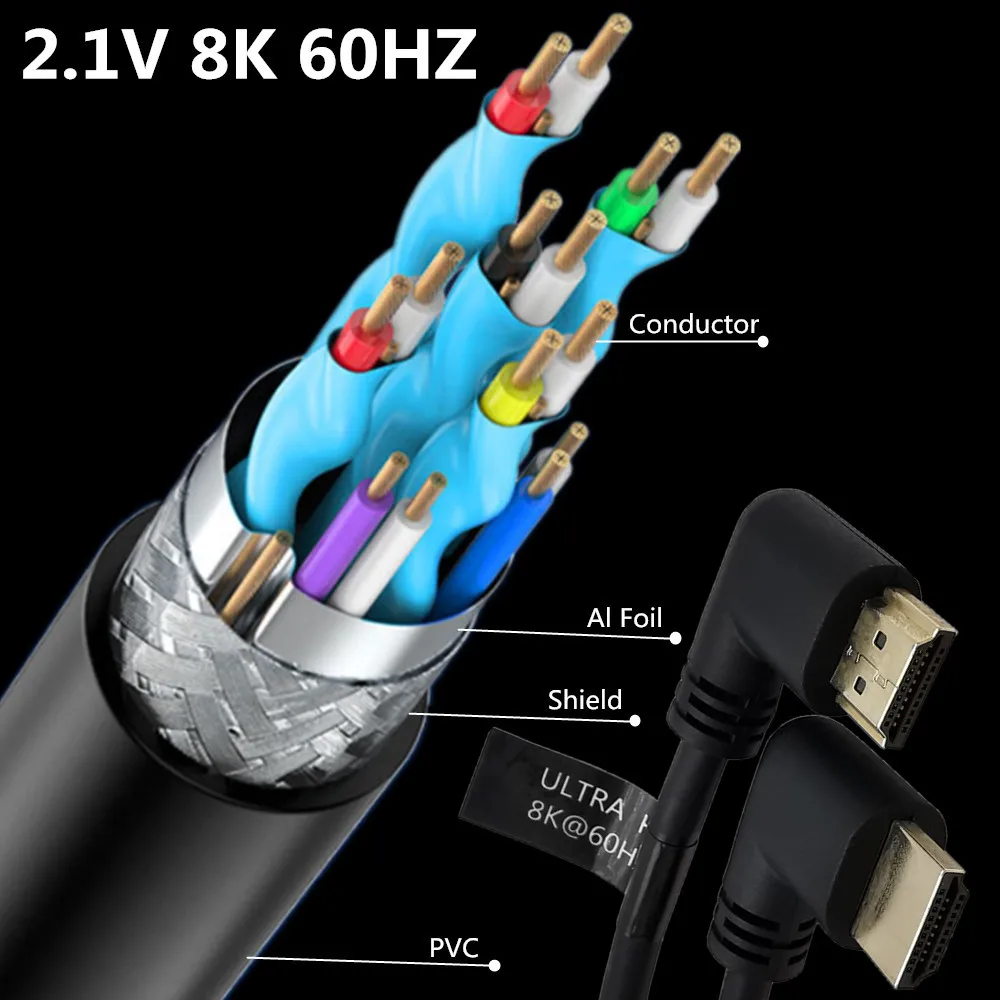 Versión 2,1 HDMI 8K 4K120HZ/8K60HZ/7680X4320 Ultra HD Cable de codo de 90 grados 0,15 m/0,5 M/1m