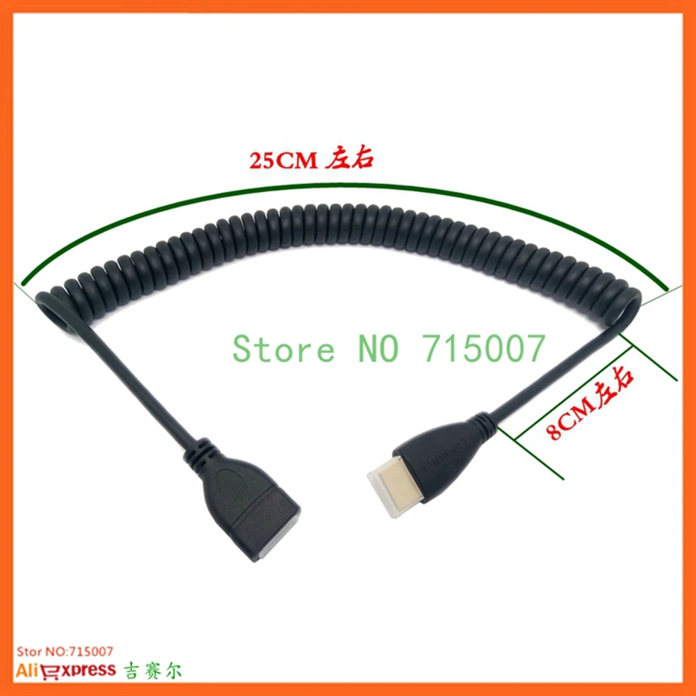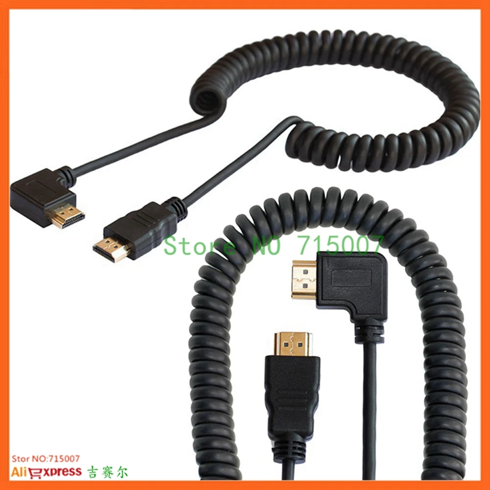 HDMI a ángulo recto y izquierdo Mini HDMI, HDMI y Micro HDMI macho a macho Cable flexible de rizo de resorte elástico V1.4 DSLR 0,5 M/1,5 M