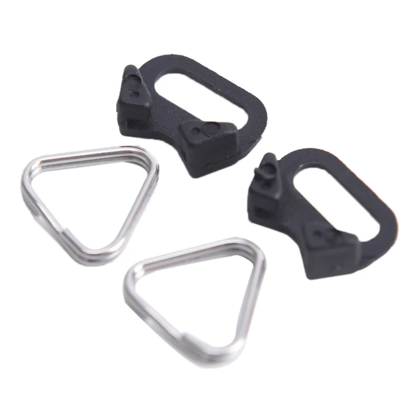 El adaptador de anillo dividido triangular con tapa de plástico ABS está diseñado para sujetar la correa del cuello/hombro de la cámara o la correa de mano al ojal pequeño de la cámara.