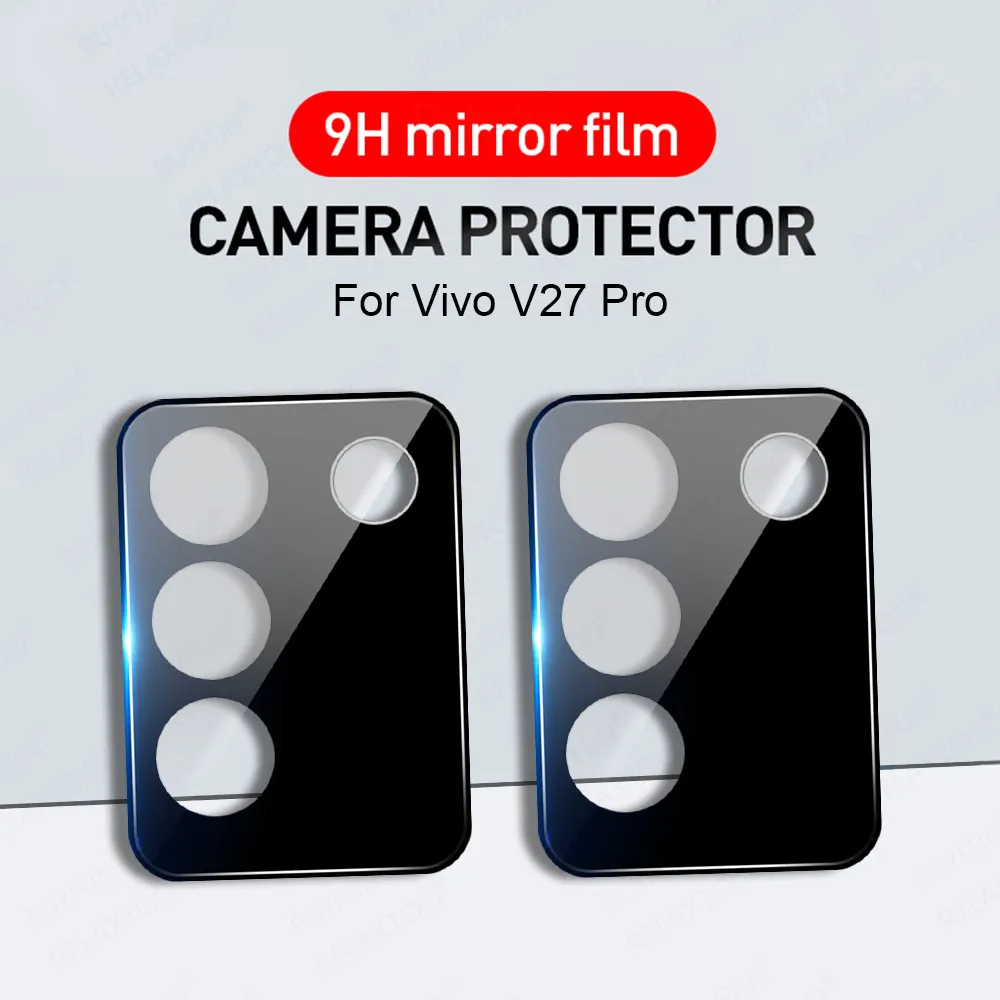 Para Vivo V27 Pro Glass 2 piezas funda de anillo Protector de cámara trasera en VivoV27 V 27 27 V V27Pro 5G 2023 película protectora cubierta de parachoques trasero