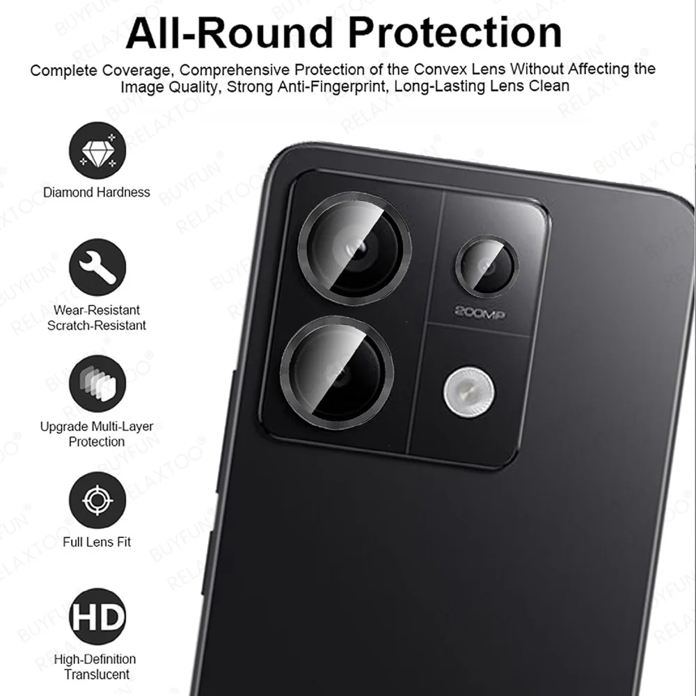 Para Xiaomi Redmi Note 13 Pro 5G Lente de metal de aleación Anillo de vidrio templado Note13 Pro + Note13Pro Plus 13Pro 4G Protector de pantalla de cámara