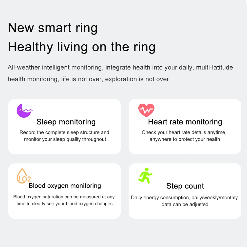 3.Diseño de moda:El monitor de estado de anillo inteligente no solo ofrece funcionalidad sino que también cuenta con un diseño elegante fabricado con materiales de alta calidad para comodidad durante todo el día.Su construcción combinada con tecnología impermeable le permite mantenerse conectado al aire libre, manejando sin esfuerzo la exposición diaria al agua, como nadar, lavarse las manos y la lluvia, satisfaciendo todas sus necesidades de impermeabilización.