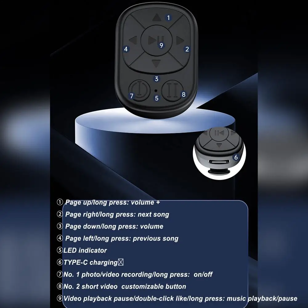 ForTik tok-video de desplazamiento remoto con la punta del dedo, controlador de dientes azules, obturador inalámbrico para cámara, botón de Selfie, página de giro de foto