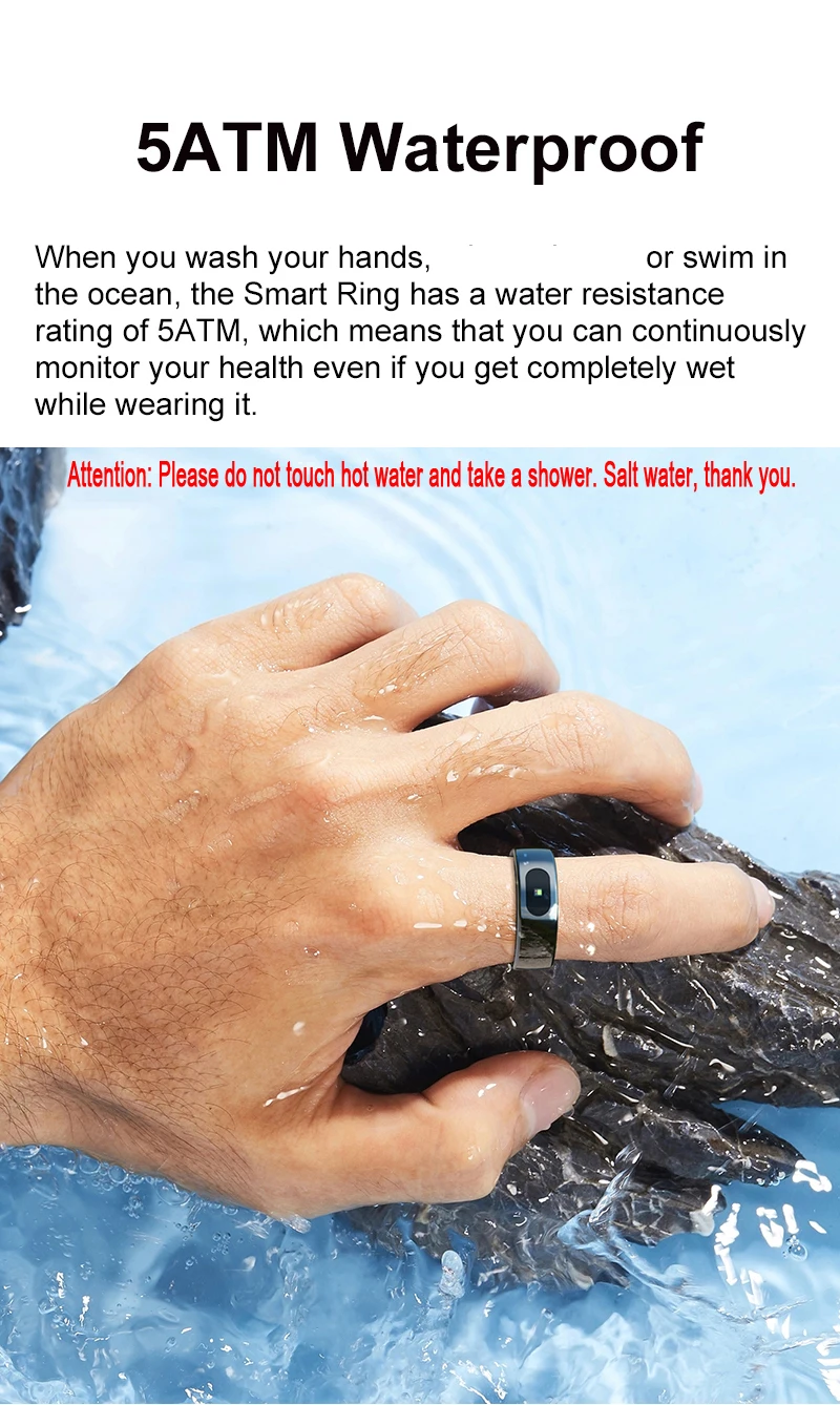 Comprar Anillo inteligente R08 para hombres y mujeres, función de Control táctil, Monitor de salud, medida de temperatura de la piel, anillo inteligente resistente al agua IP68 5ATM