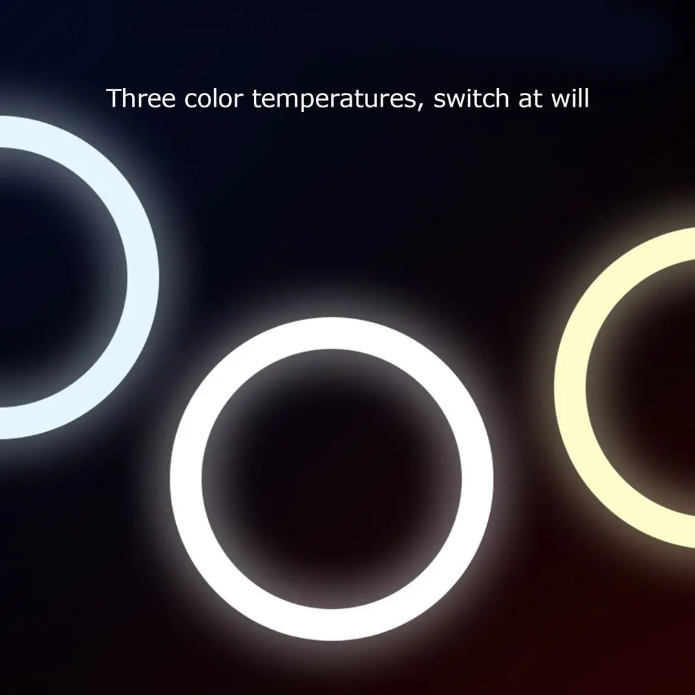 1. Muchos efectos de iluminación: La luz anular tiene 3 posibles temperaturas de luz: Blanco cálido, blanco neutro y blanco frío. Cada color de luz se puede configurar en 10 niveles diferentes para cumplir con todos sus requisitos en diferentes circunstancias.