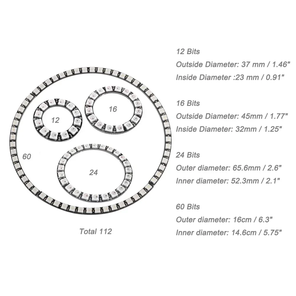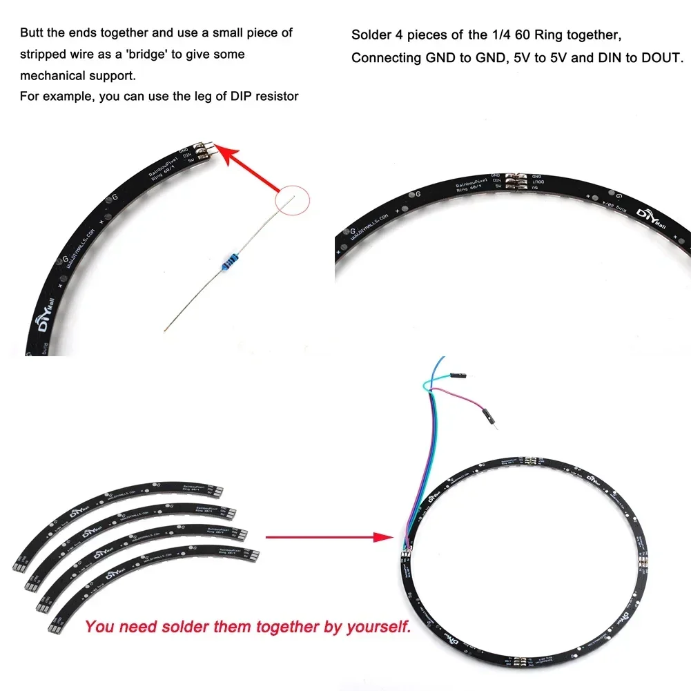 Note: the 60 bits ring is 4 pieces of separate 1/4 ring , you need solder them together by yourself, package without any cables.