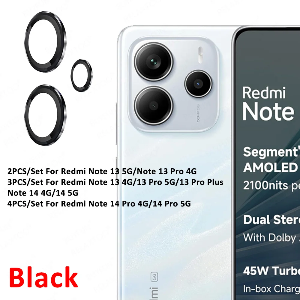 3 unids/set anillo de lente de Metal para Xiaomi Redmi Note 13 4G/13 Pro 5G/13 Pro Plus/Note 14 4G/14 5G