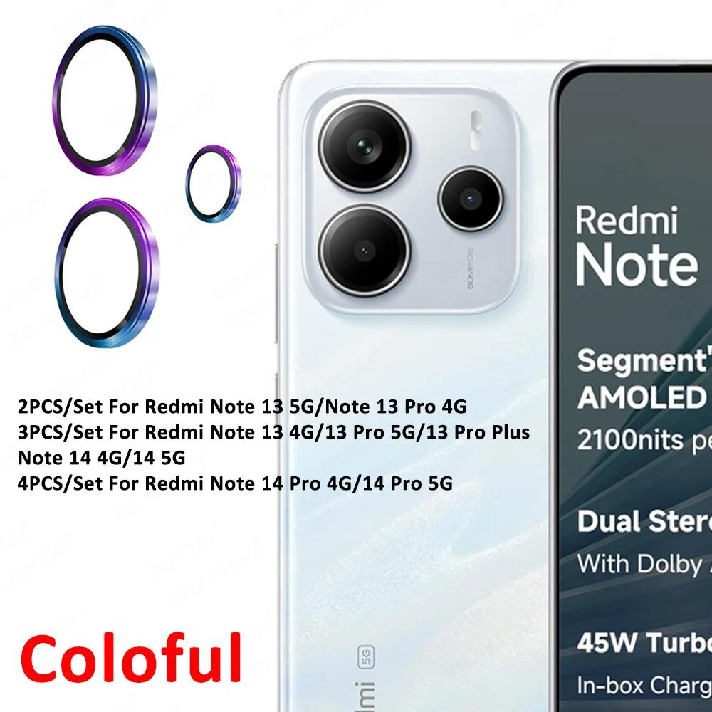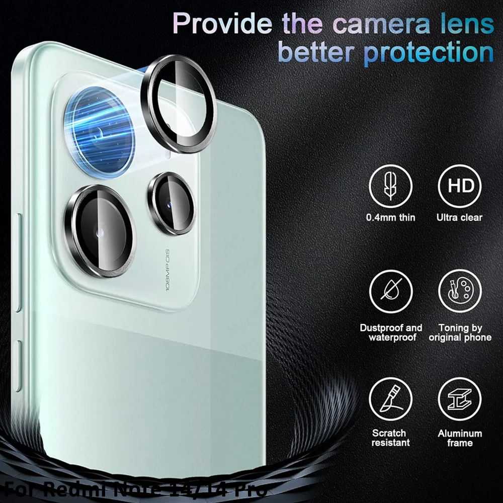 Comprar Anillo de lente de aleación de aluminio 3D para Xiaomi Redmi Note 14 5G, funda protectora de cristal para cámara trasera Note14 Pro 13 Pro + 13Pro Plus Note13 4G