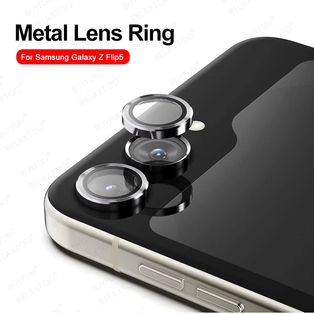For Samsung Galaxy Z Flip5 Rear Metal Lens Ring Case SamsungZFlip5 ZFlip5 ZFlip 5 Flip 5 5G Camera Tempered Glass Back Cover Cap