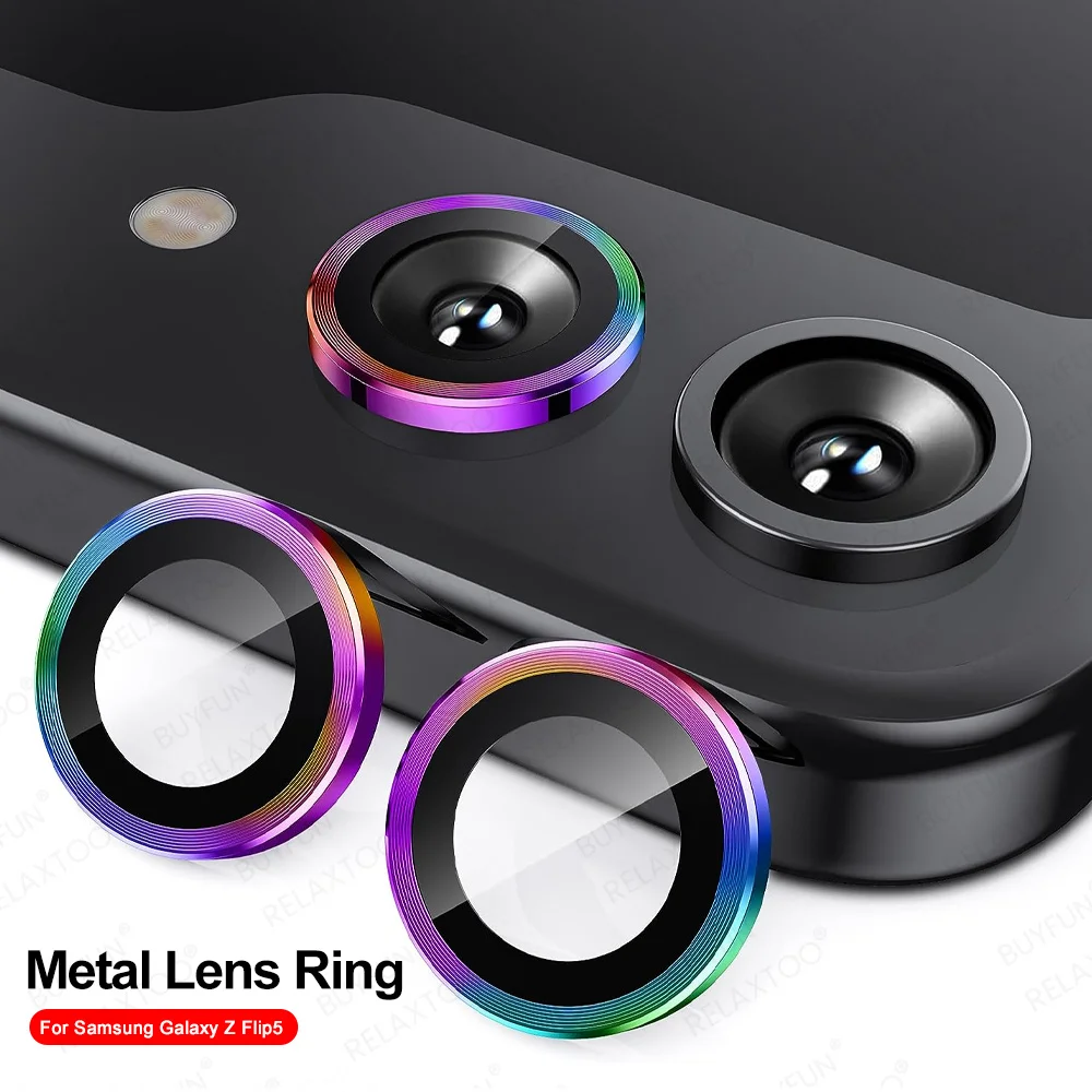 For Samsung Galaxy Z Flip5 Rear Metal Lens Ring Case SamsungZFlip5 ZFlip5 ZFlip 5 Flip 5 5G Camera Tempered Glass Back Cover Cap