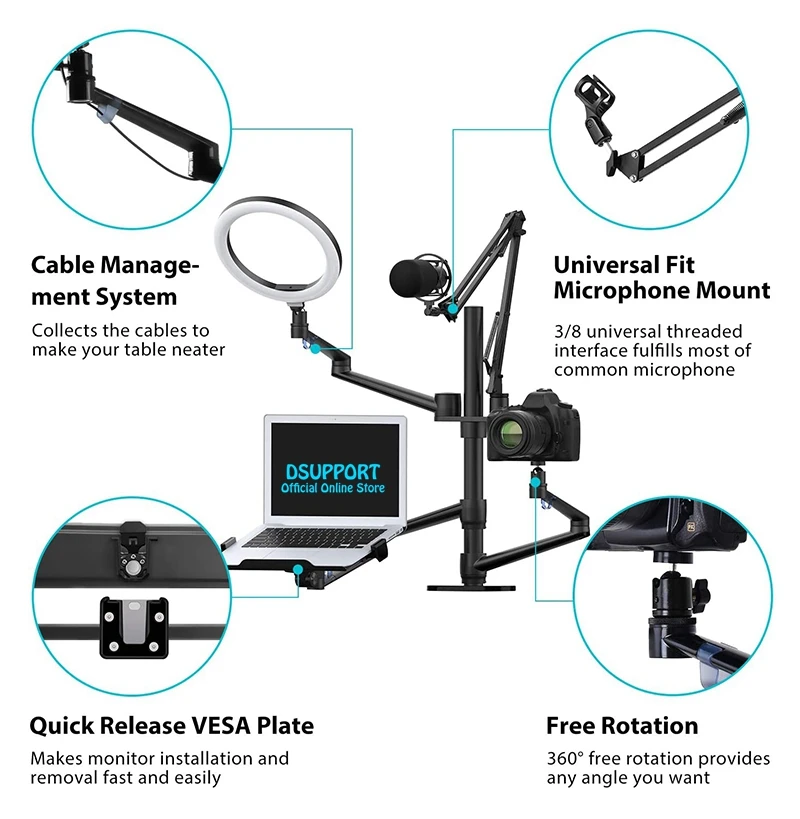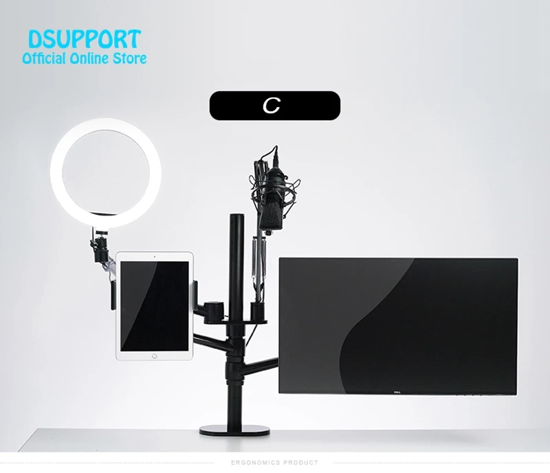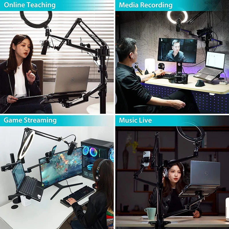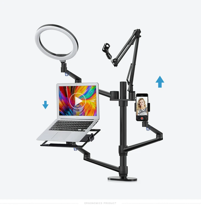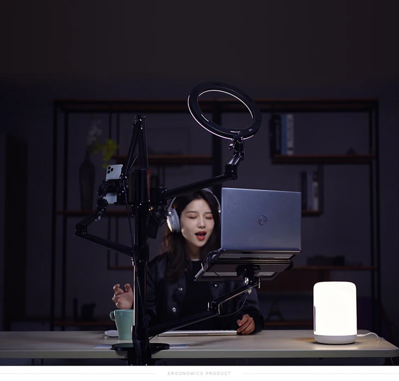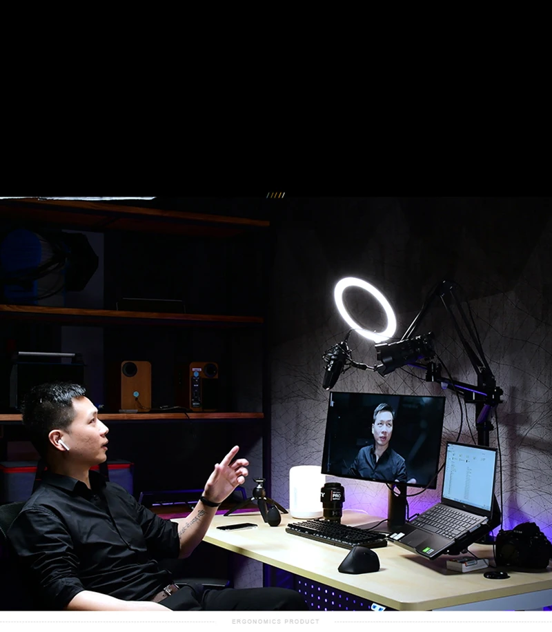 Comprar Anillo de luz LED 6 en 1 para escritorio, soporte con micrófono, montaje Compatible con ordenador portátil de 12-17 "/monitor de 17-32"/7-13 tableta/3,5-