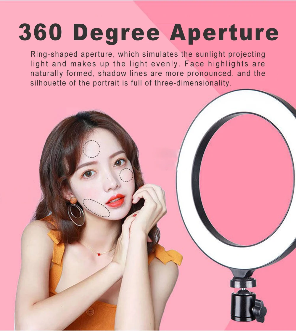1.dimmable Led Ring Light With A Wide Dimming Range From Level-1 To Level-10. 2.special Led Design, Lightweight And Portable. Constant Current Drive, Low Power Loss. 3.no Ultraviolet And Infrared Light Radiation, Low Heat Output, Safety And Environmental Protection. 4.long Service Life Of More Than 50000hrs. 5.with Reinforced Flexible Arm Which Will Move Freely And Never Droop. 6.extra Long Cord And Heavy Duty Thumb Screws. 7.it Is Widely Applied To Outdoor Photo Light, Filling Light Indoors, Portrait, Fashion, Wedding Art, Advertisement Photography, Shooting Video, Etc. 8.user: Video Blogger, Influencer Network, Makeup Artist, Photographer, Female, Child, Etc.
