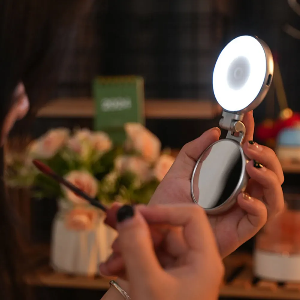 Anillo de luz portátil 3 en 1 para teléfono con espejo, luz LED de viaje para teléfono móvil, recargable para selfies/fotografía/videoconferencias