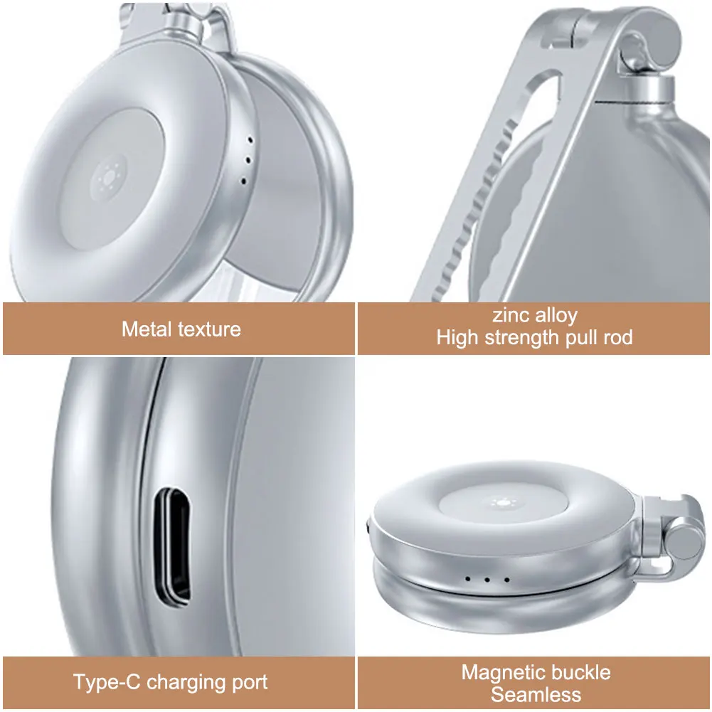 5.Brazo de extensión ajustable:Una varilla telescópica de 36 mm permite disparos personalizados.Esta luz magnética para selfies tres en uno se adapta a todos los tamaños de teléfonos; simplemente tire para extenderla y piegue para guardarla.