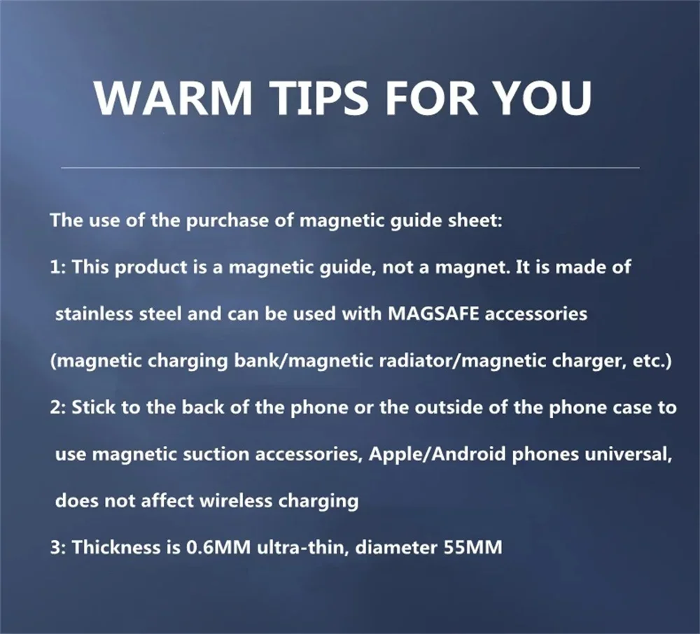 Características: Peso ligero, fácil de instalar, viene con adhesivo, adecuado para la mayoría de los teléfonos móviles