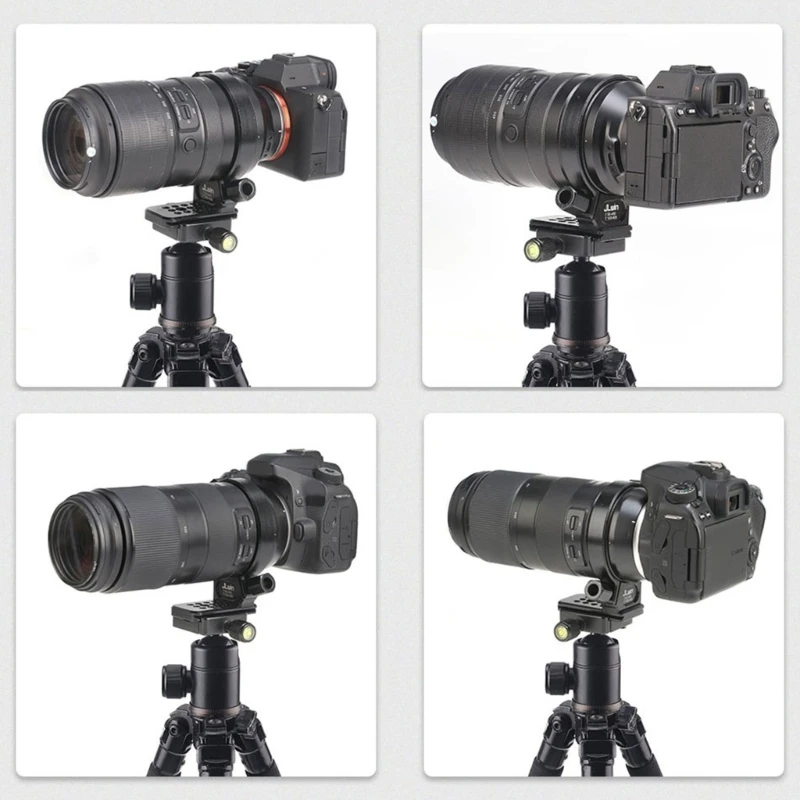Ya sea que esté capturando paisajes o retratos, este soporte para trípode con cuello de lente proporciona la solución perfecta para lograr fotografías y movimientos de giro suaves.
