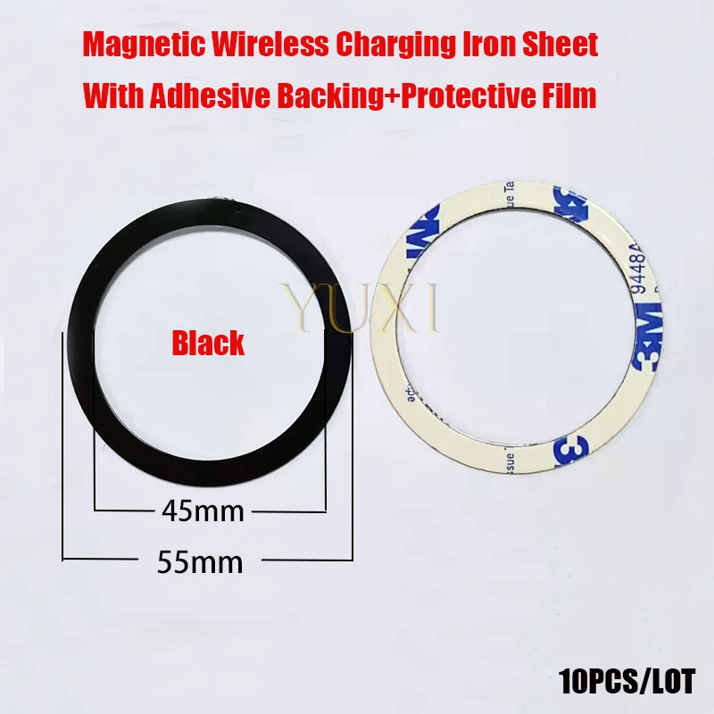 Comprar Anillo de placa de Metal magnética Universal de acero inoxidable, 10 unidades, para cargador inalámbrico Magsafe, pegatina de hoja de hierro, soporte magnético para teléfono de coche