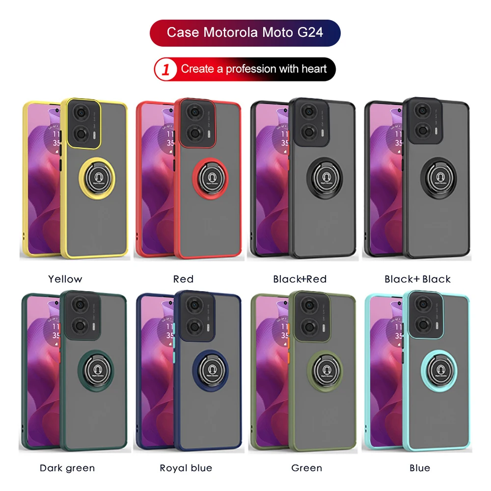 Comprar Anillo de soporte magnético a prueba de golpes, funda de armadura mate para Motorola Moto G24 MotoG24 G 24 Power 4G, parachoques transparente, cubierta trasera dura de PC