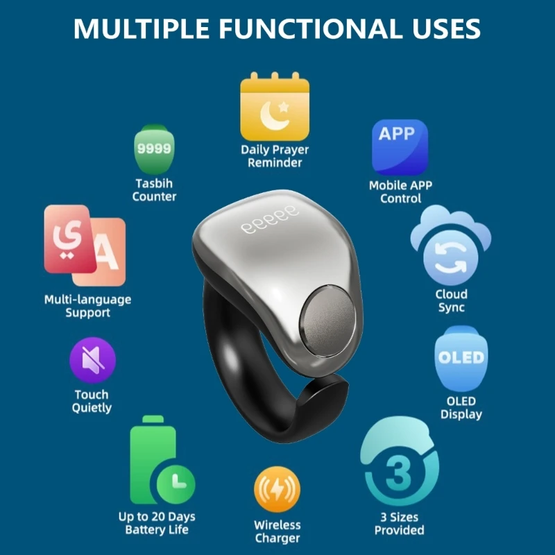 El paquete incluye1 pieza de anillos inteligentes Tasbih (18mm/20mm/22mm reemplazables)