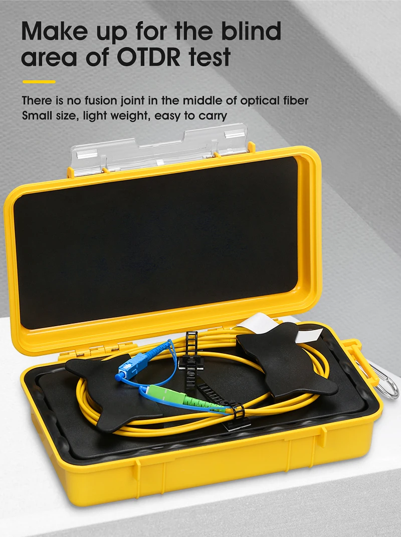 Comprar Anillos de fibra óptica OTDR, caja de Cable de lanzamiento, 1km, SM 1310/1550nm, SC/APC-SC/UPC OTDR, eliminador de zona muerta, envío gratis