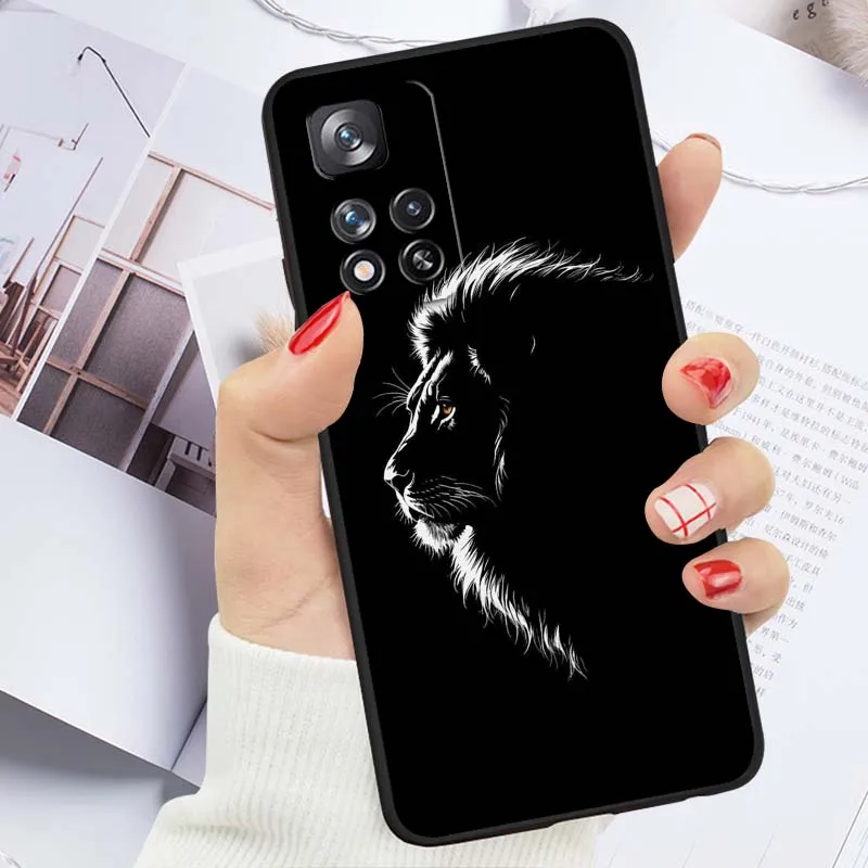 Animal con estampado de León para Redmi 14C 13C 12C 10C 9C 13 12 10 9 9A 8 8A A1 A2 A3 6A 7A 6 7 5G funda de teléfono negra