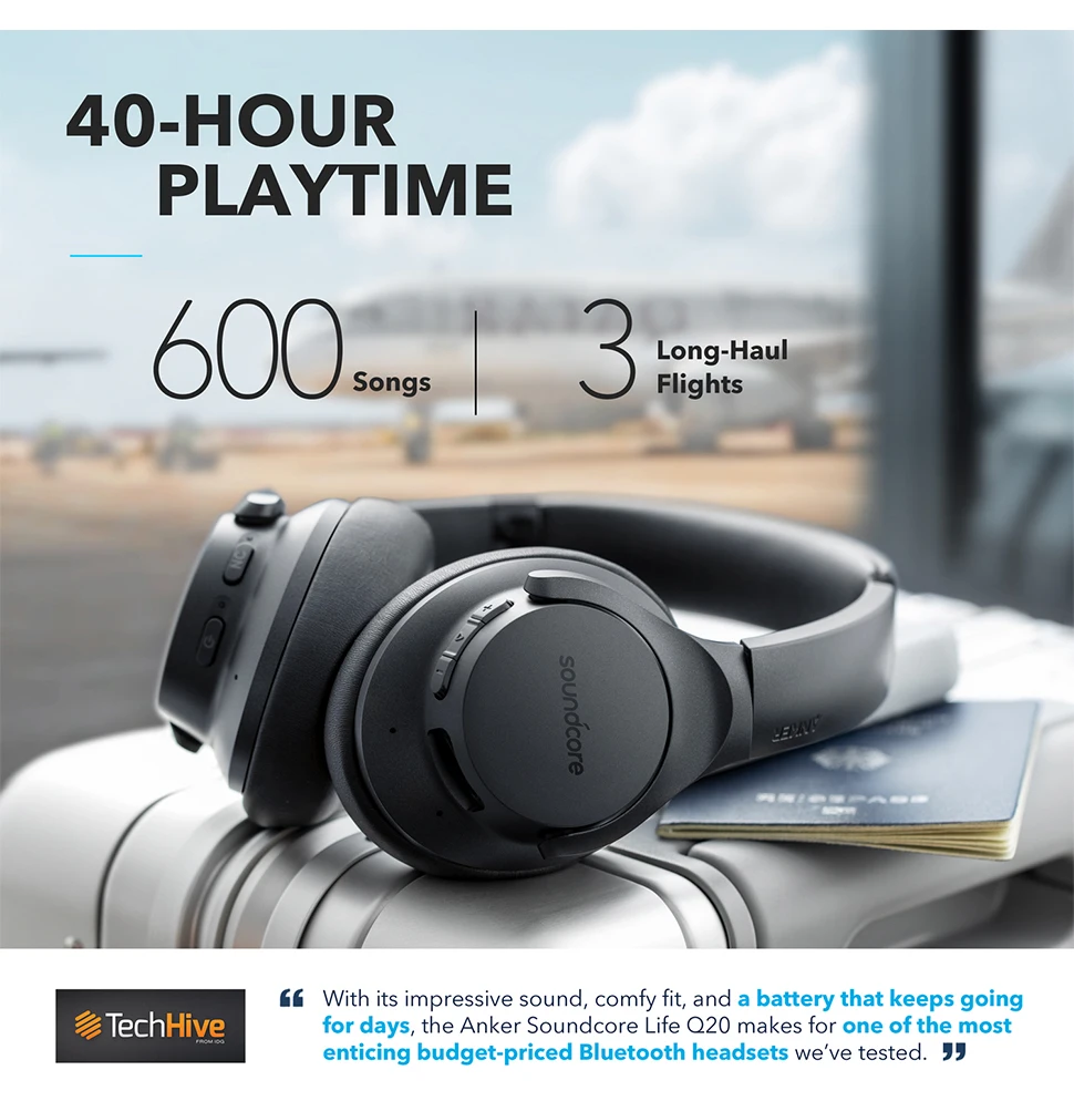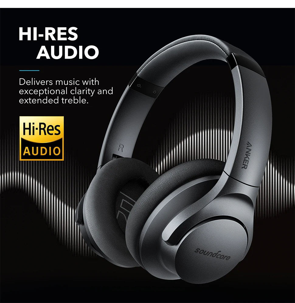 Comprar Anker-Auriculares híbridos Soundcore Life Q20, cancelación activa de ruido, bluetooth, por encima de la oreja, inalámbricos
