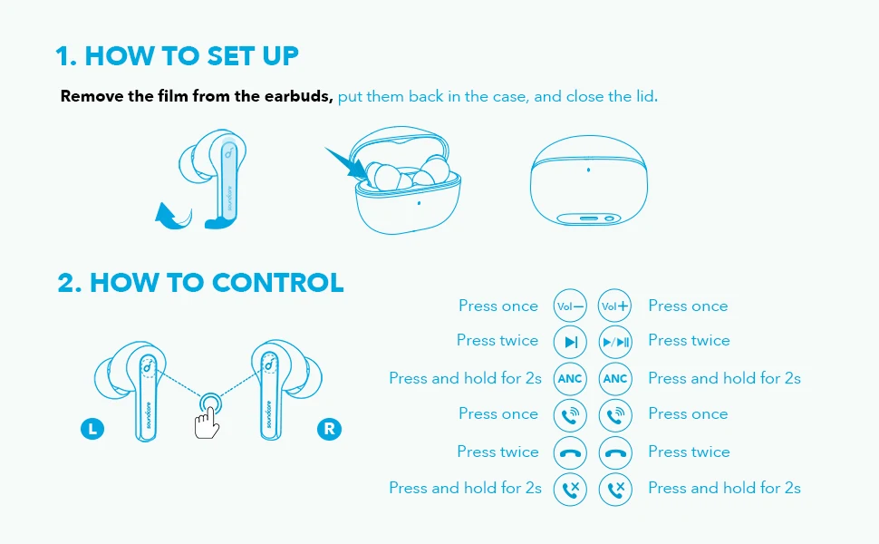 Consigue 9 horas de reproducción con una sola carga y hasta un total de 36 horas cuando usas la funda compacta para recargar los auriculares inalámbricos. Cuando esté en modo ANC, obtenga hasta 24 horas de tiempo de reproducción ininterrumpida o disfrute de 6 horas de escucha con una sola carga.