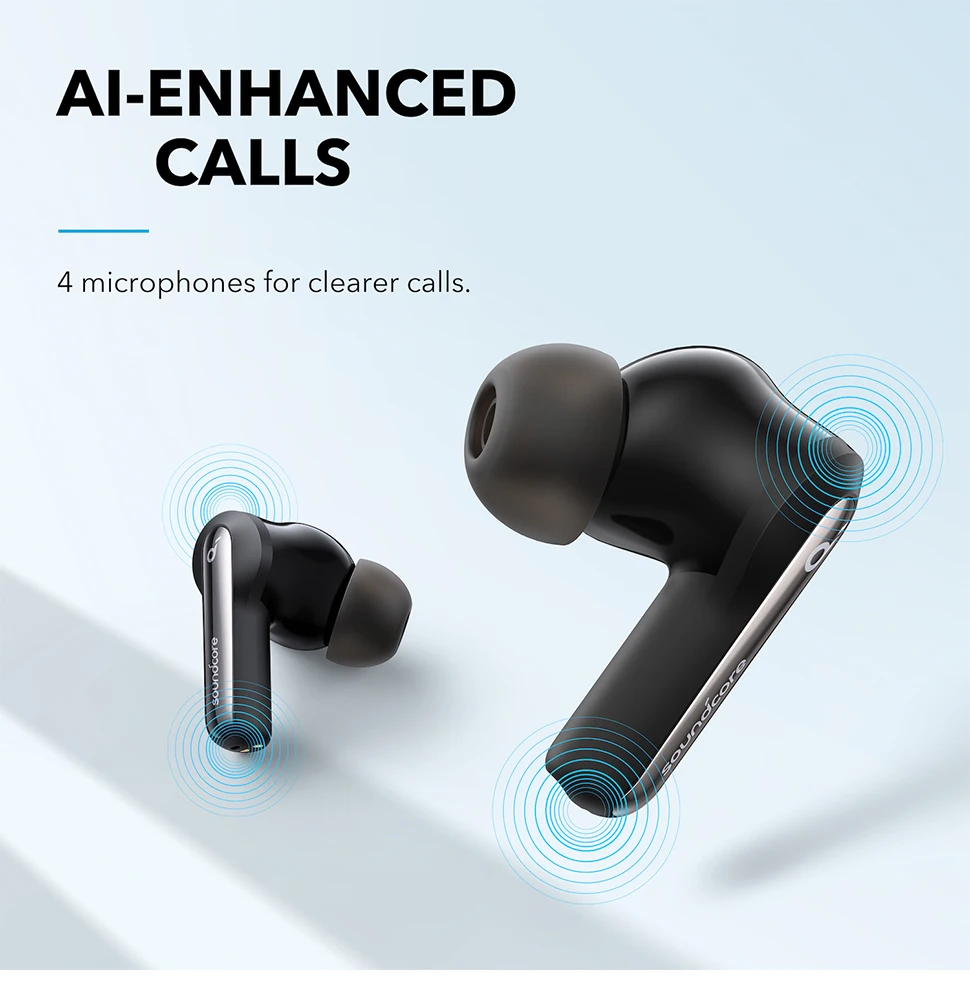 La captación de voz mejorada a través de 4 micrófonos, mientras que la reducción de ruido de IA garantiza que se le escuche claramente al usar los auriculares con cancelación de ruido Life P3i para llamadas.