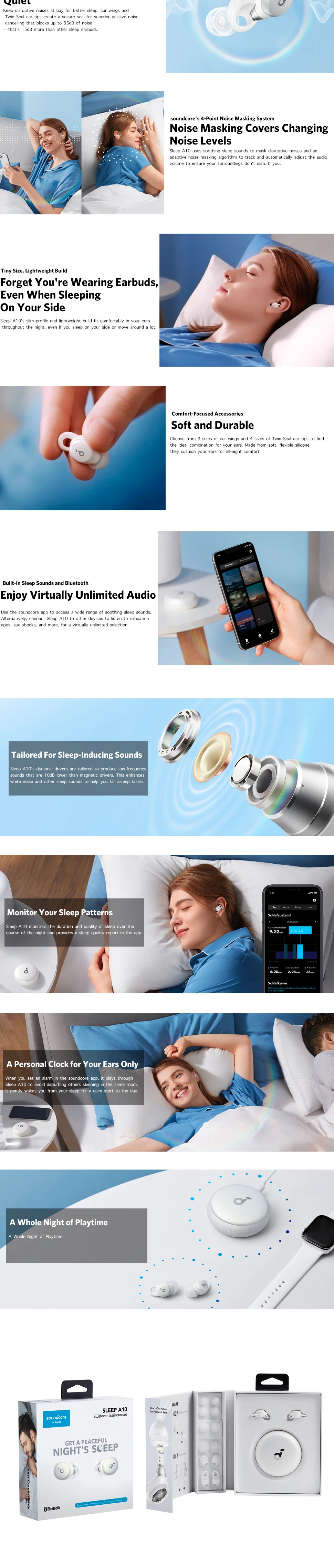 4-Point Noise Masking System: Block out up to 35dB of noise. Sleep A10's algorithm masks external noises and the flexible ear wings and Twin Seal ear tips create a secure seal for enhanced passive noise blocking.