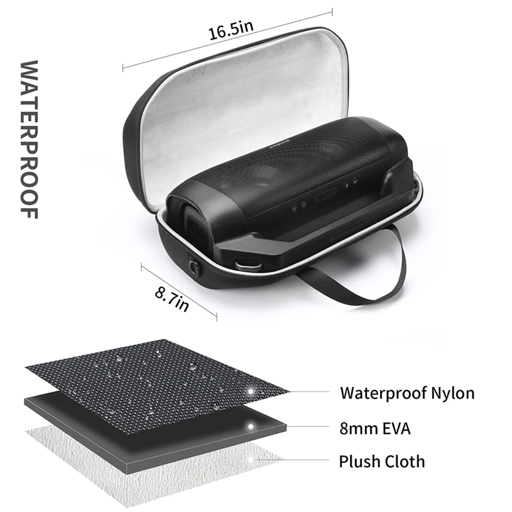 2. Protección de alta calidad:Está HECHO DE EVA de alta calidad y carcasa de material de nailon resistente al polvo y al desgaste, y el interior es de franela suave. Proporciona una buena protección para sus altavoces cuando los transportan, contra arañazos y golpes, impermeable, a prueba de golpes y completo para garantizar la seguridad del dispositivo.